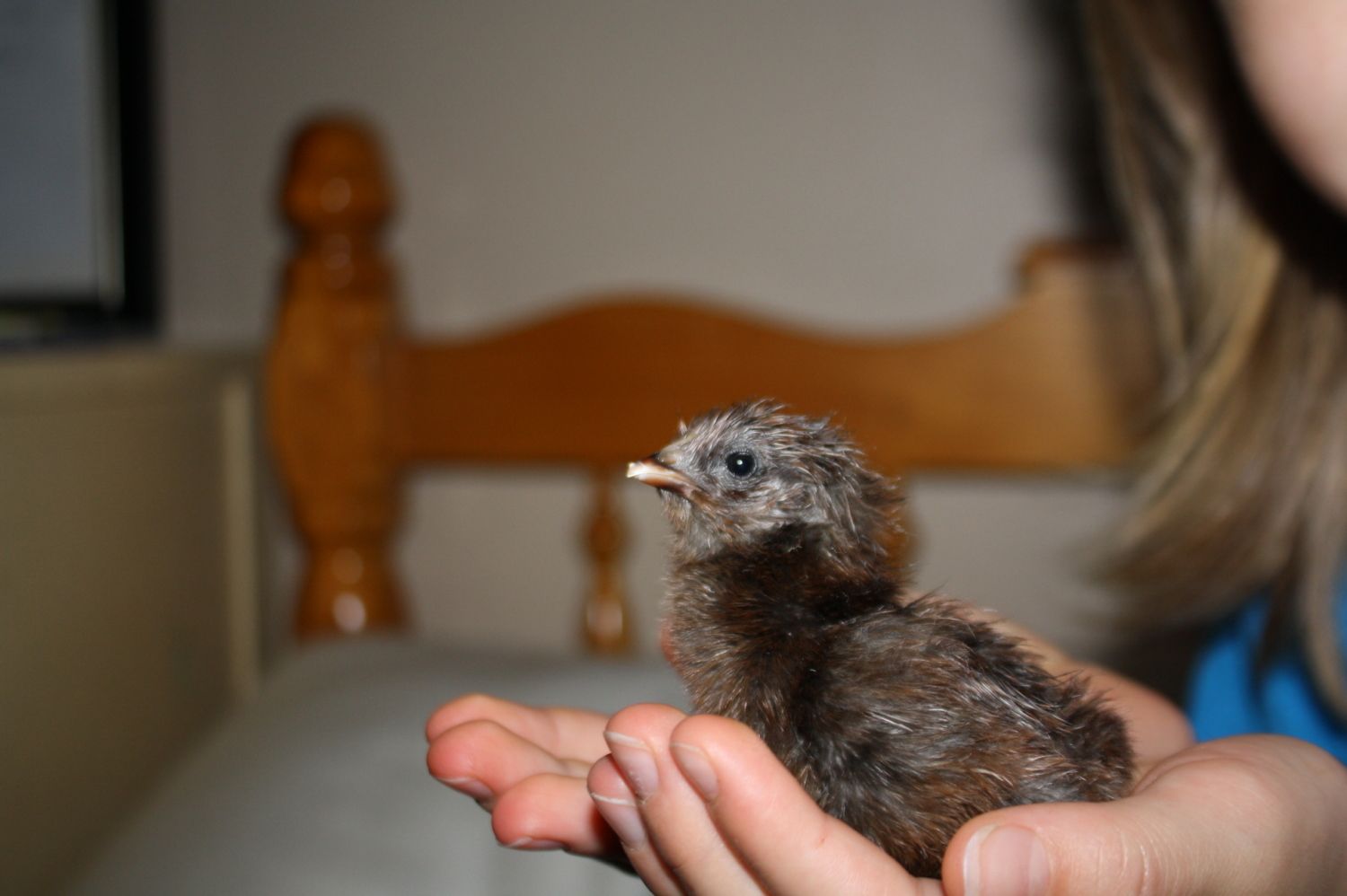My daughters came up with a name the very instant they saw her (before we even knew the sex....which I'm 90% sure on). Introducing, "Skylark Faustina", an EE/Fayoumis mix. (EE mom, Fayoumis dad):
