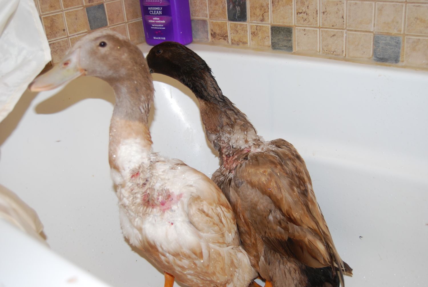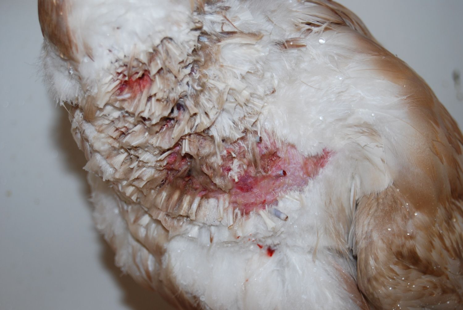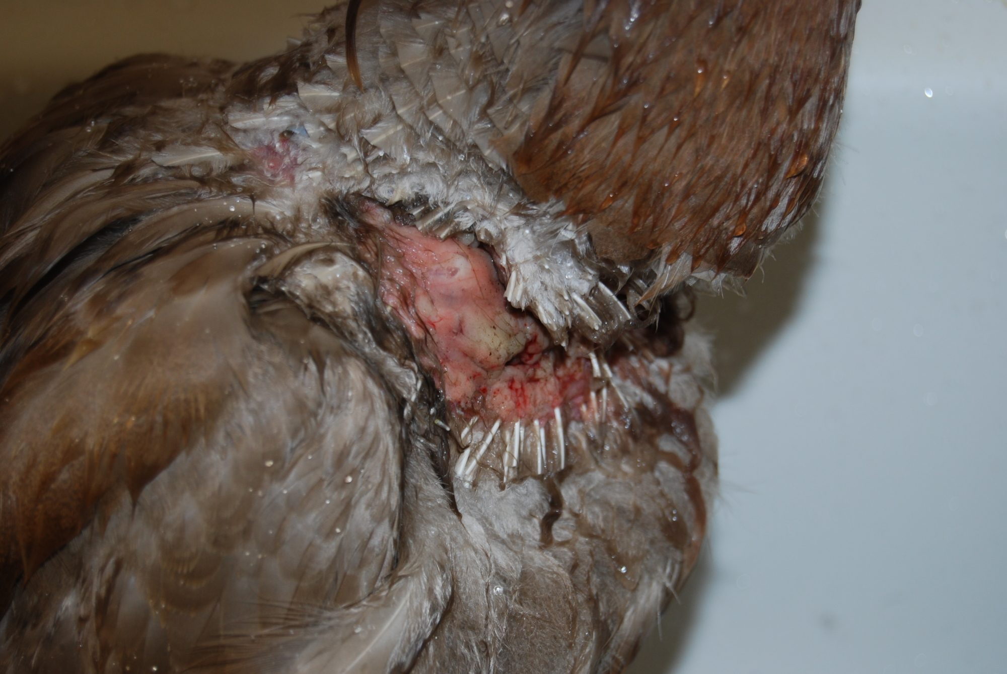 Yesterday, my GSD got a hold of 3 of my ducks and tore their necks open bad. The wounds are deep, muscle exposed, punctures, skin abrasions. I have flushed them well, cleaned with betadine, and applied FuraZone cream, which I mixed with sugar to help with granulation of the tissue. That has worked like a miracle, and the wounds themselves are healing rapidly.