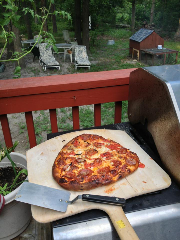 Ya know it's horrbile hot almost everywhere in the U.S. this month. Investing in a ceramic tile at Home Depot or a pizza stone and putting that on your charcoal or propane grill and baking a pizza using my dough and sauce recipe is really easy. It's cool to have an al fresco (outside) cooking and dining experience. Buy a pizza peal at a restaurant supply place and shape and build the pie on the peal, spread a small amount of flour and corn meal on the peal, then push out your dough and build your pie. Super easy. Let the kids decorate their own pies with what they want... Give it a try !!