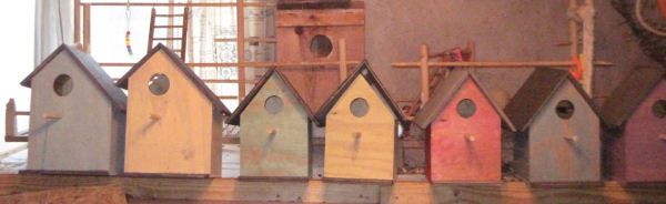 Love those boxes. They remind me of those old-fashioned bathing huts at the beach.We breed budgies in a flock which you are not meant to do. So we compensated for arguments with a special design box. The cockatiel box also has eaves.