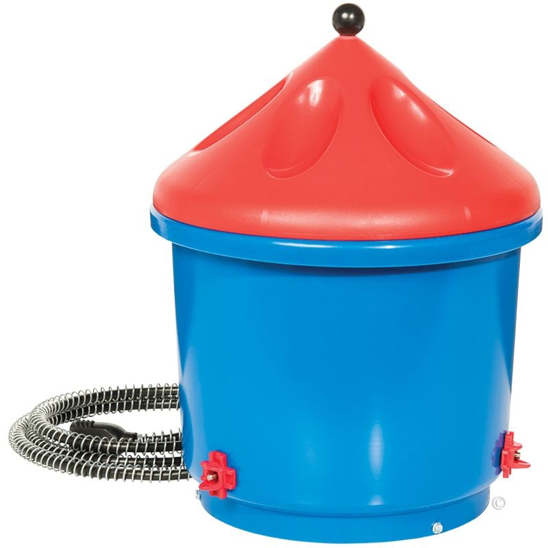 I just came across what I thought sounded like a great idea for keeping a waterer from freezing in cold climates in unheated coops while using the kind of waterer I want to use: a hanging 5-gallon bucket with nipples in the bottom. The solution is placing a submersible birdbath heater in the bucket. They are more robust than aquarium heaters.