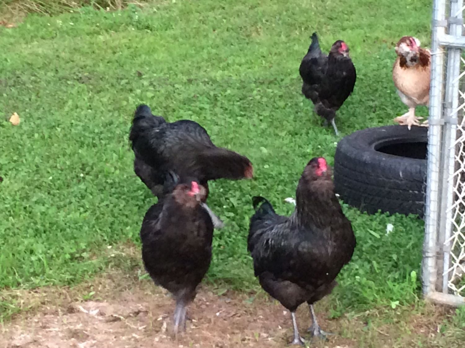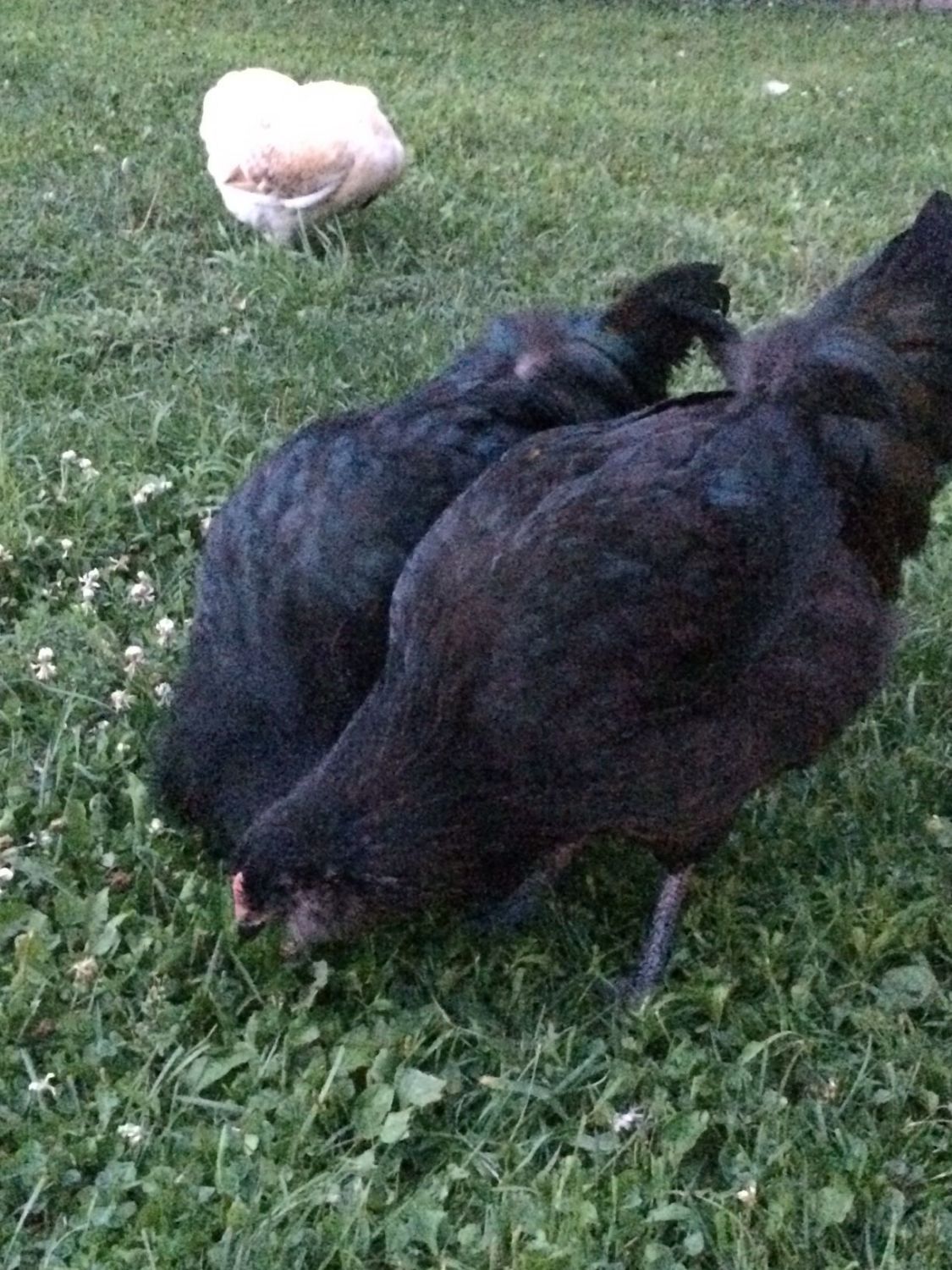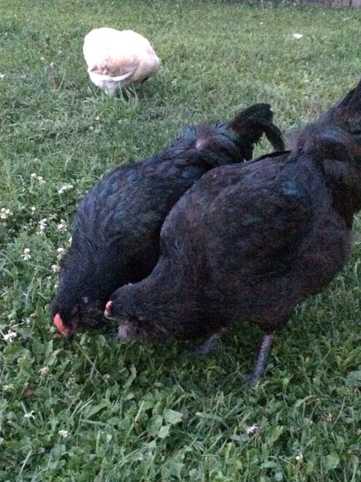 We received our chicks from Cackle Hatchery back in April. We ordered four Ameraucana straight run chicks hoping that at least one of them would be a hen..... Please tell me we have at least one hen? My heart hopes we do but my gut says we don't. They are all larger than the Easter Egger and Salmon Faverolle hens. There is one in particular who doesn't ever seem to get aggressive and gets along peacefully with the rest of the chickens just fine, as opposed to the other obvious roosters who are always sparring with each other and everyone else. This chicken has a lighter comb than the others, but is the same size and has a prominent chest like the roosters. I've taken some photos in hopes that someone can shed some light. We are really stumped here. Please excuse the horrible pics... I just realized how grainy they came out.
