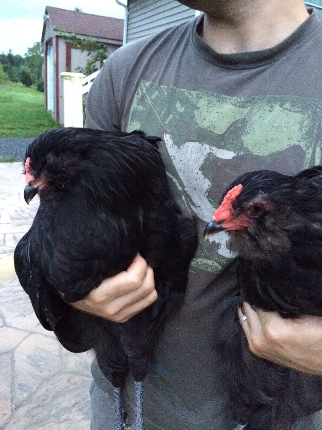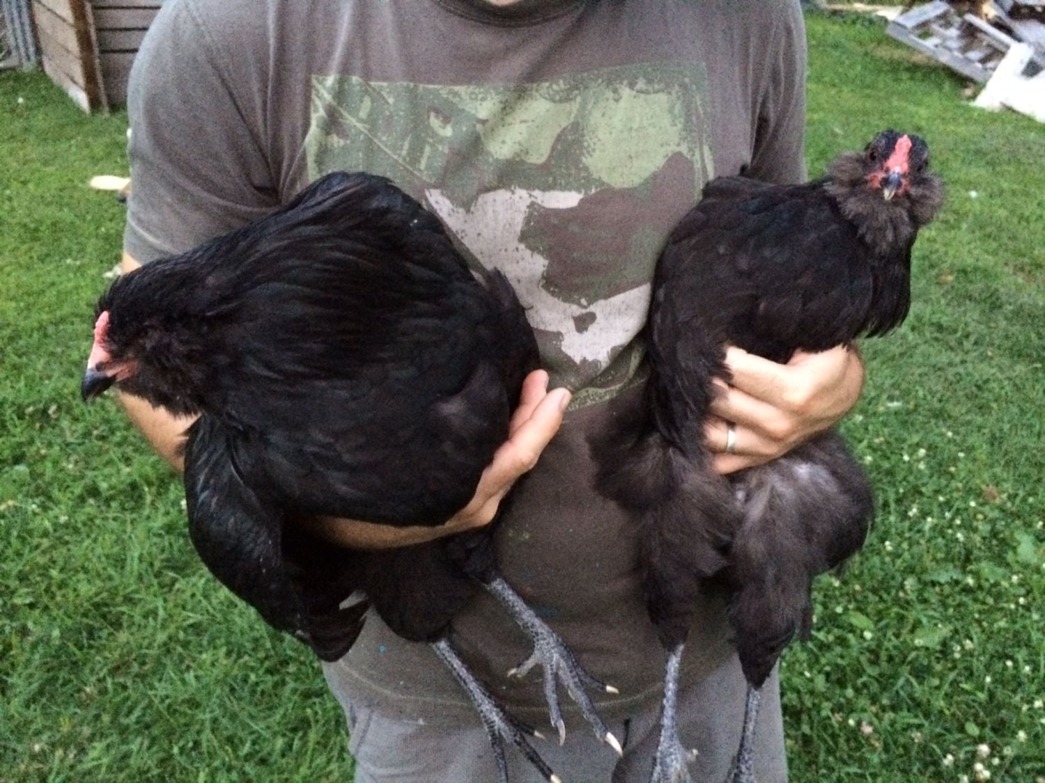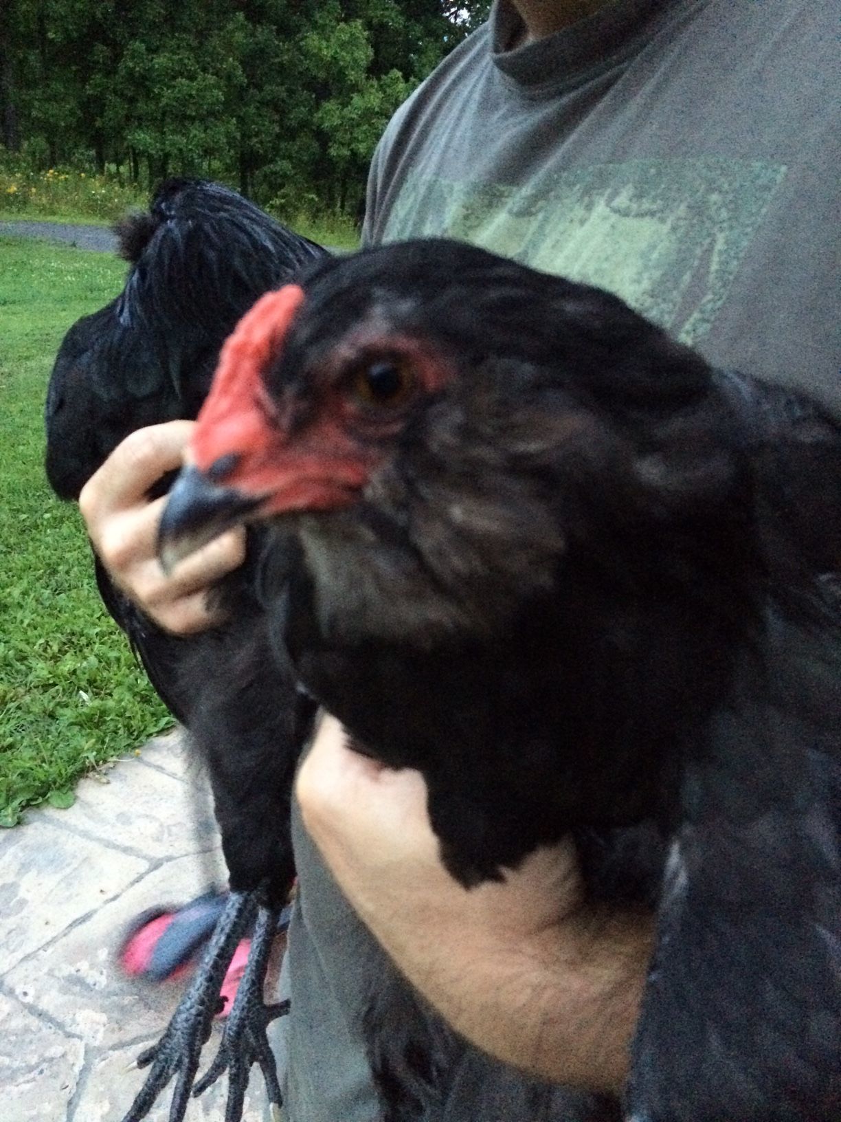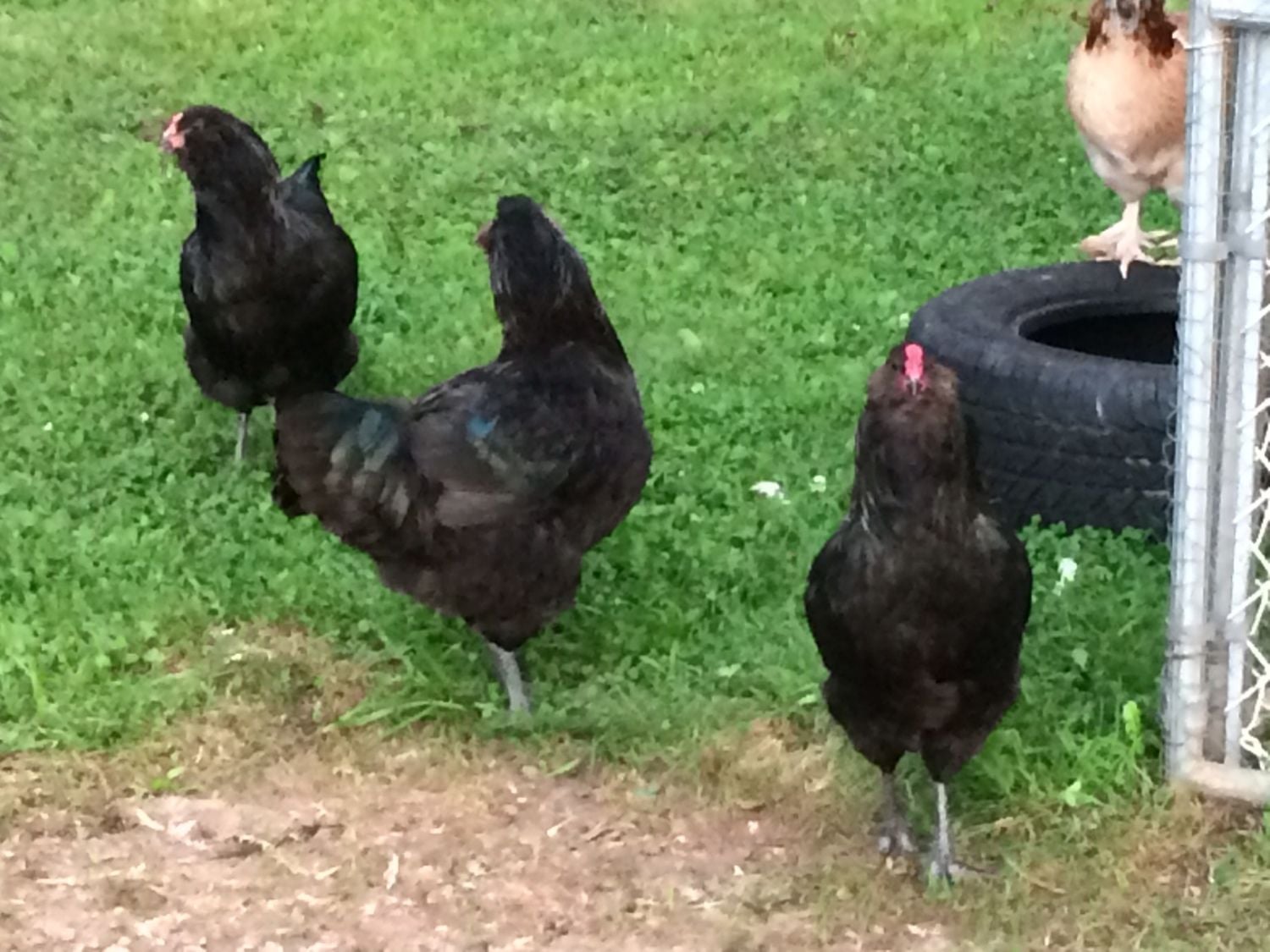 We received our chicks from Cackle Hatchery back in April. We ordered four Ameraucana straight run chicks hoping that at least one of them would be a hen..... Please tell me we have at least one hen? My heart hopes we do but my gut says we don't. They are all larger than the Easter Egger and Salmon Faverolle hens. There is one in particular who doesn't ever seem to get aggressive and gets along peacefully with the rest of the chickens just fine, as opposed to the other obvious roosters who are always sparring with each other and everyone else. This chicken has a lighter comb than the others, but is the same size and has a prominent chest like the roosters. I've taken some photos in hopes that someone can shed some light. We are really stumped here. Please excuse the horrible pics... I just realized how grainy they came out.