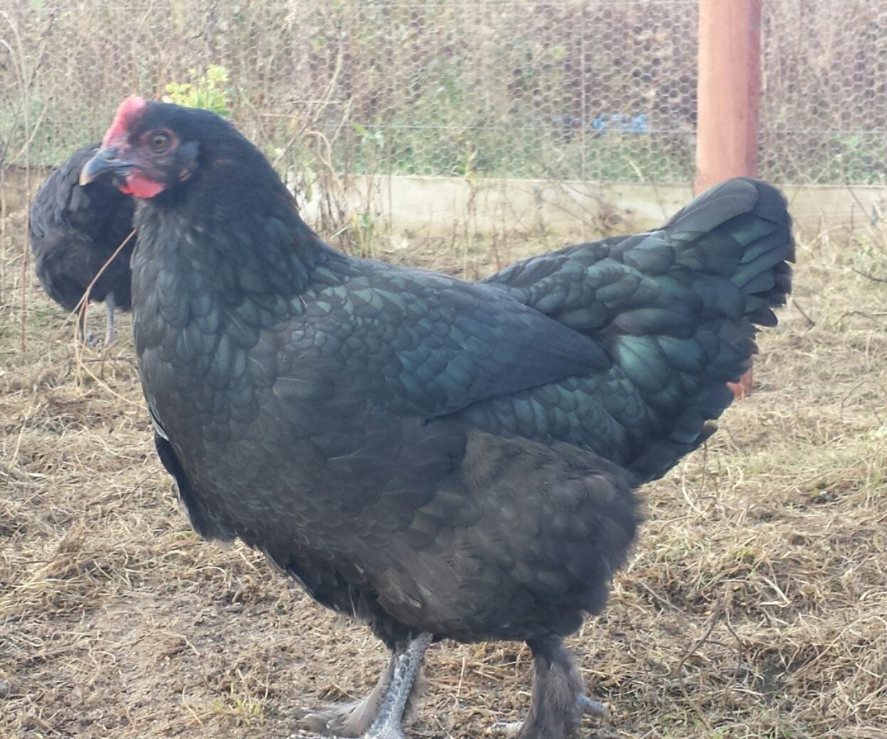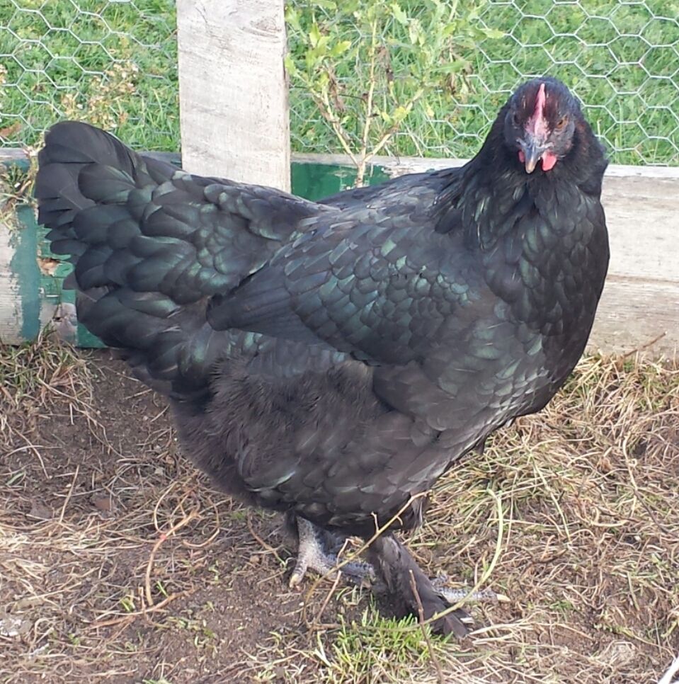 Looks like you do not have any Copper Hackle on the female necks. They will still produce young with the right amount of Copper if bred to the right male.I like all the nice Black feathers with the green sheen. The type on these is better than what is available to most.