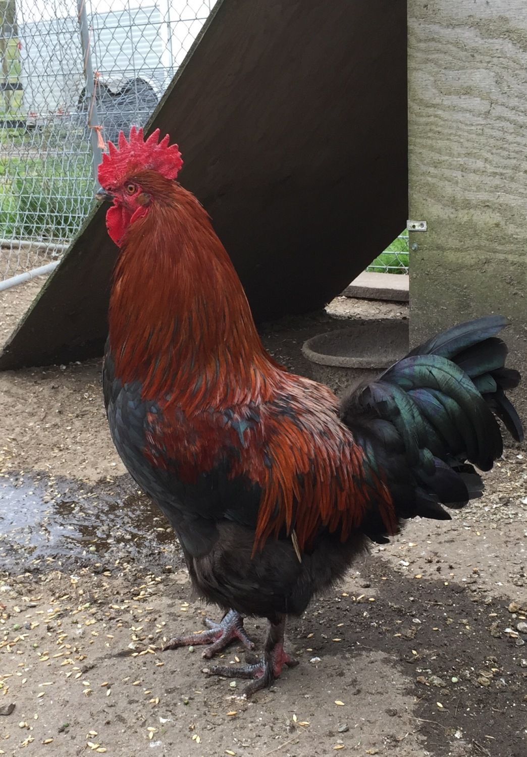 thank you for the critique, I'm always trying to learn! This is not a bird I was planning on using for breeding my BCM hens with, I was really just curious as to what causes the color variation? I'm trying to figure out what causes the back feathers to be gold instead of copper? I've never had this happen before. Would it be from impure lines or...? This guy was from a hatch I did last year, I purchased hatching eggs from a gal in TX and he is one of a few that hatched...