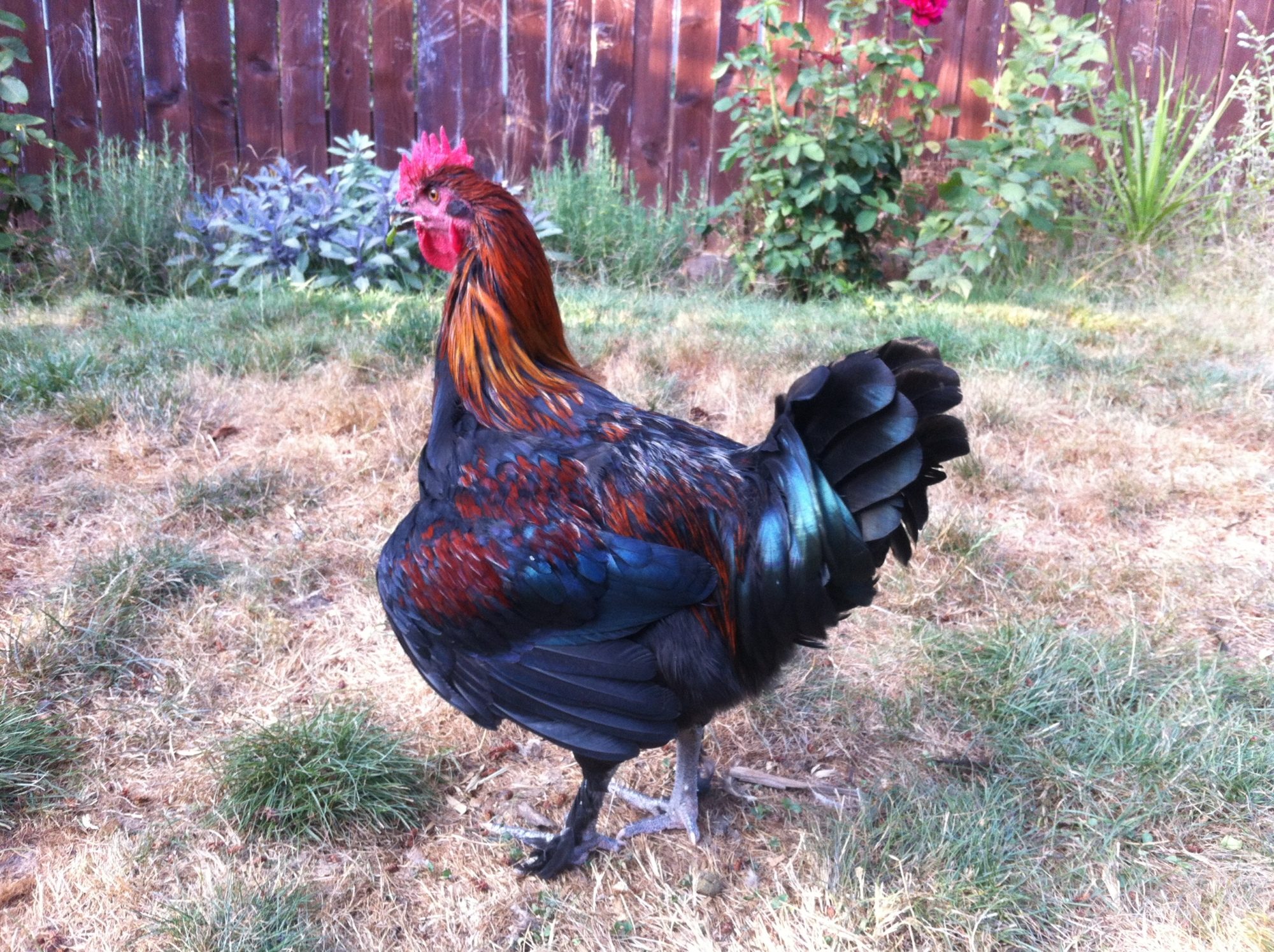 I want to thank all who commented on my questions and appreciate ALL the feedback I've received. Understanding that I made a mistake on my selection based one the APA standards regarding the red on the breast (live and learn). One additional question on the coloration - is it preferable to have black feathers over the ear or do they need to be copper. When I was reading the standards from the Marans Club of America and the Marans Club of France they state that they should be copper. I didn't see anything in the official US standards mentioning this. In the meantime I would like to know if this cock bird is a complete loss or is it possible to pair him up with an all black hen while I wait to upgrade. Here are some pictures of him. Don't hesitate being harsh with your comments I won't be offended.