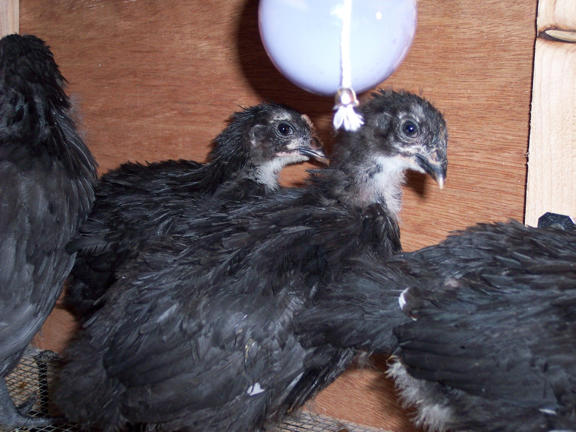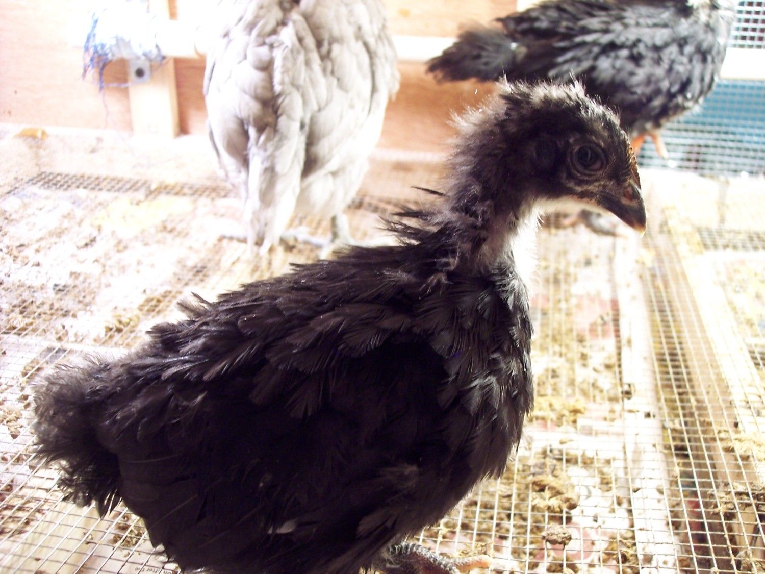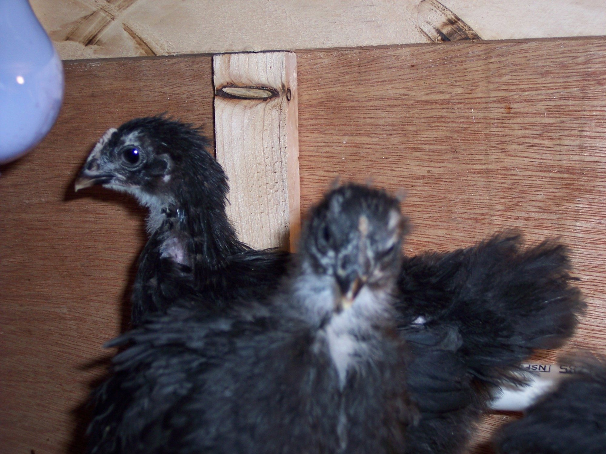 OK what are your opinions here, I am thinking two boys and two girls? Exactly four weeks old today. These poor things are at the velociraptor stage, more ugly than cute! Ignore the occasional Ameraucana sneaking into the picture.