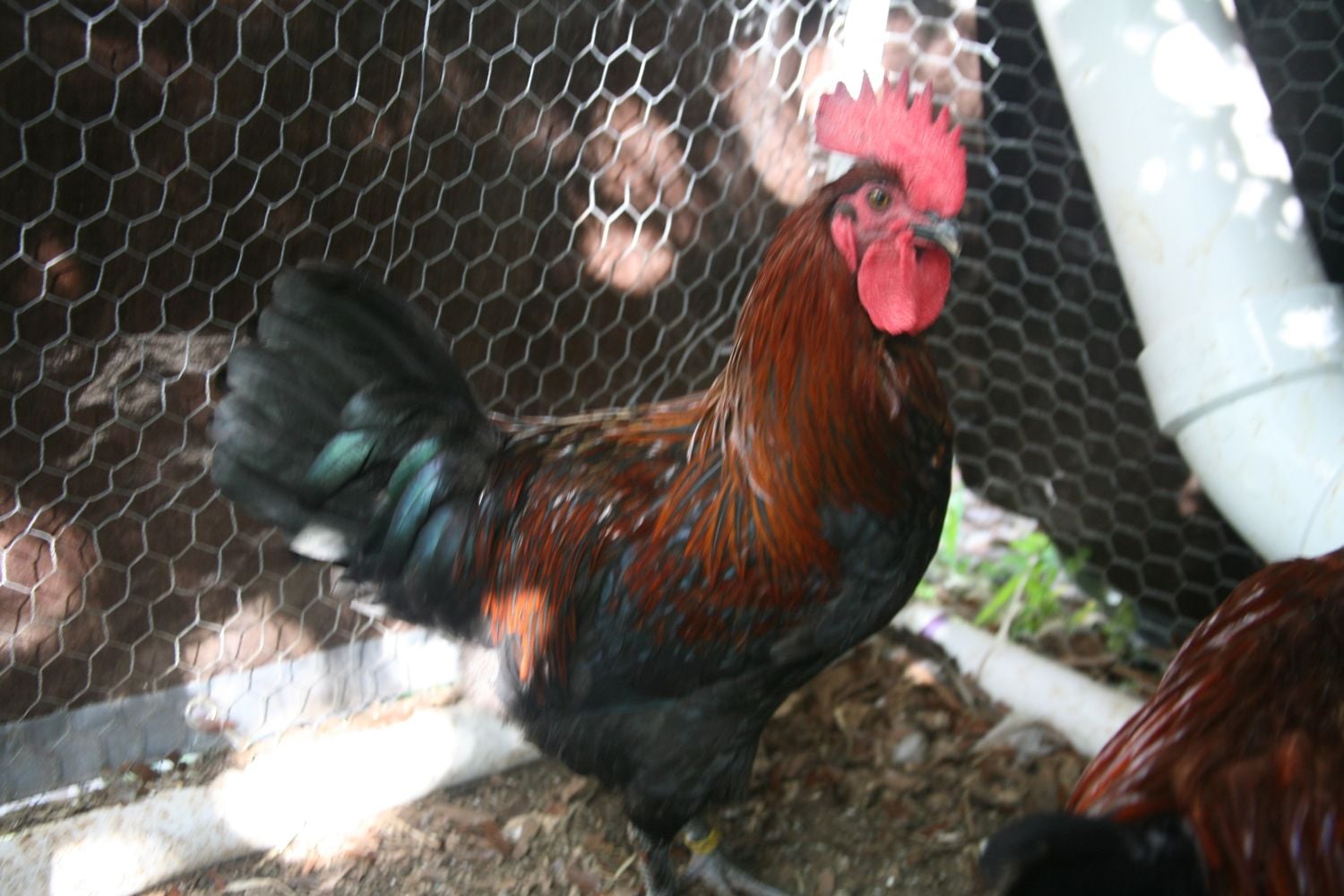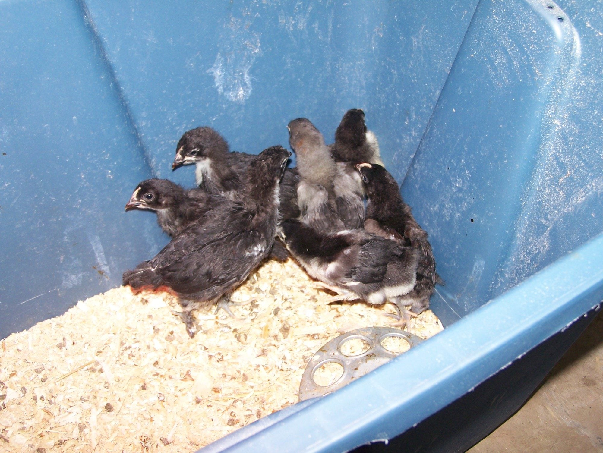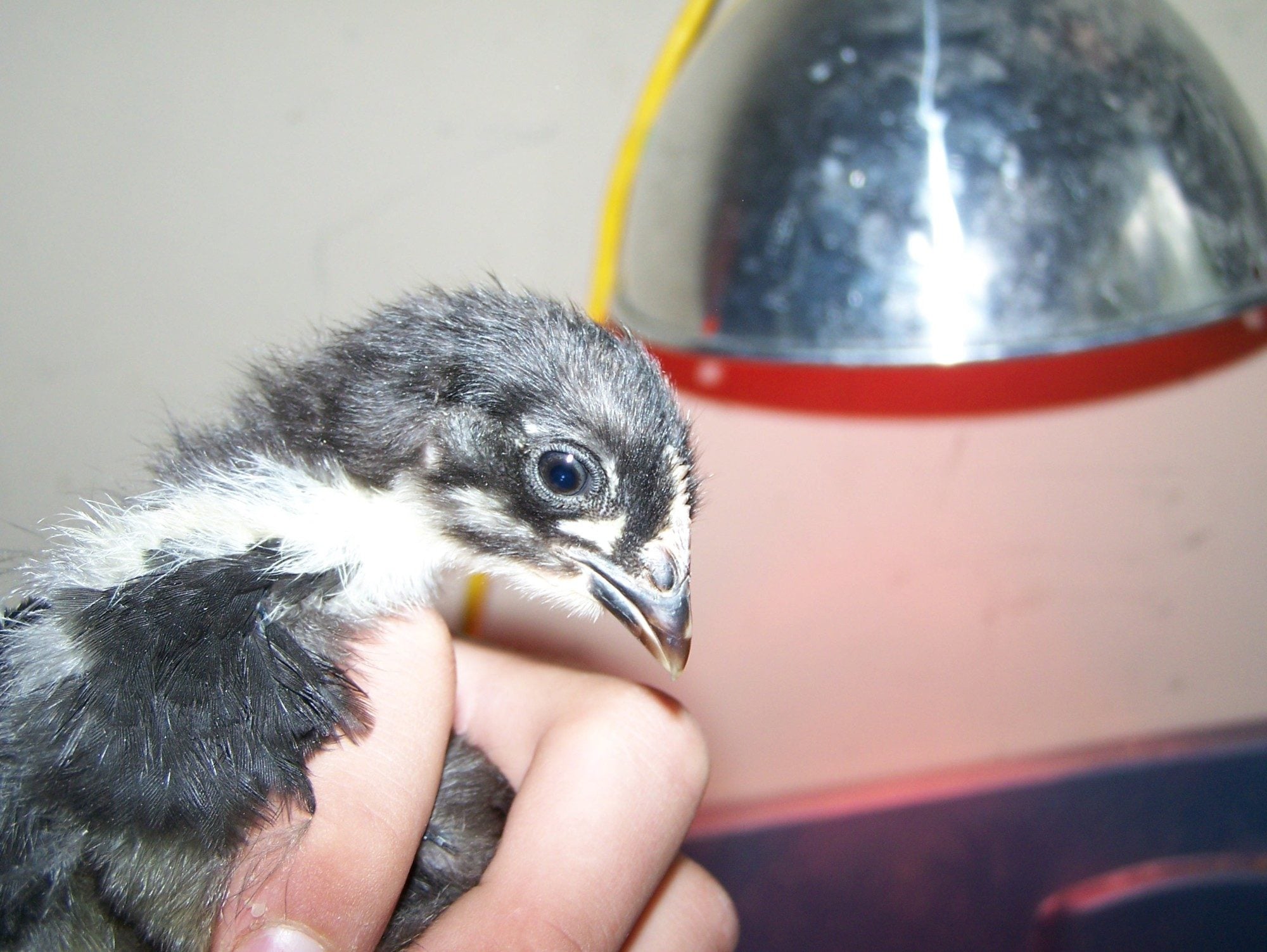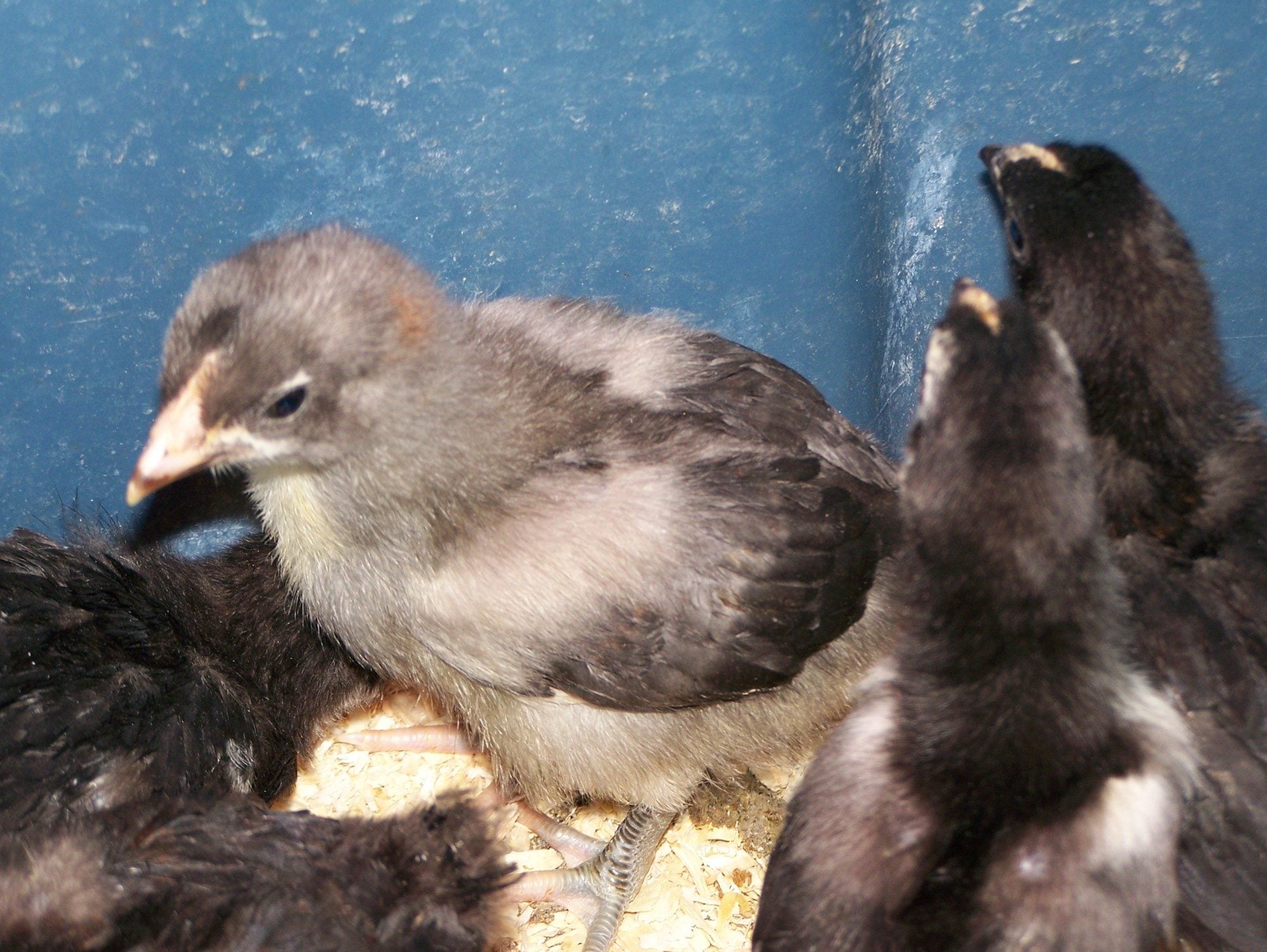 It is hard to see in this photo but this chick has a greenish black comb and has more feathers and is getting its tail feathers faster than a lot of the others.