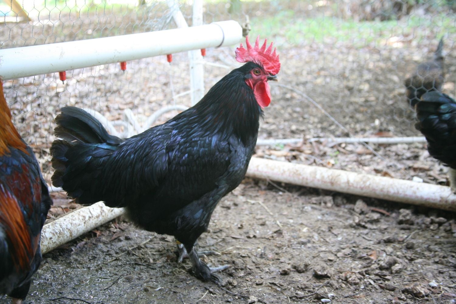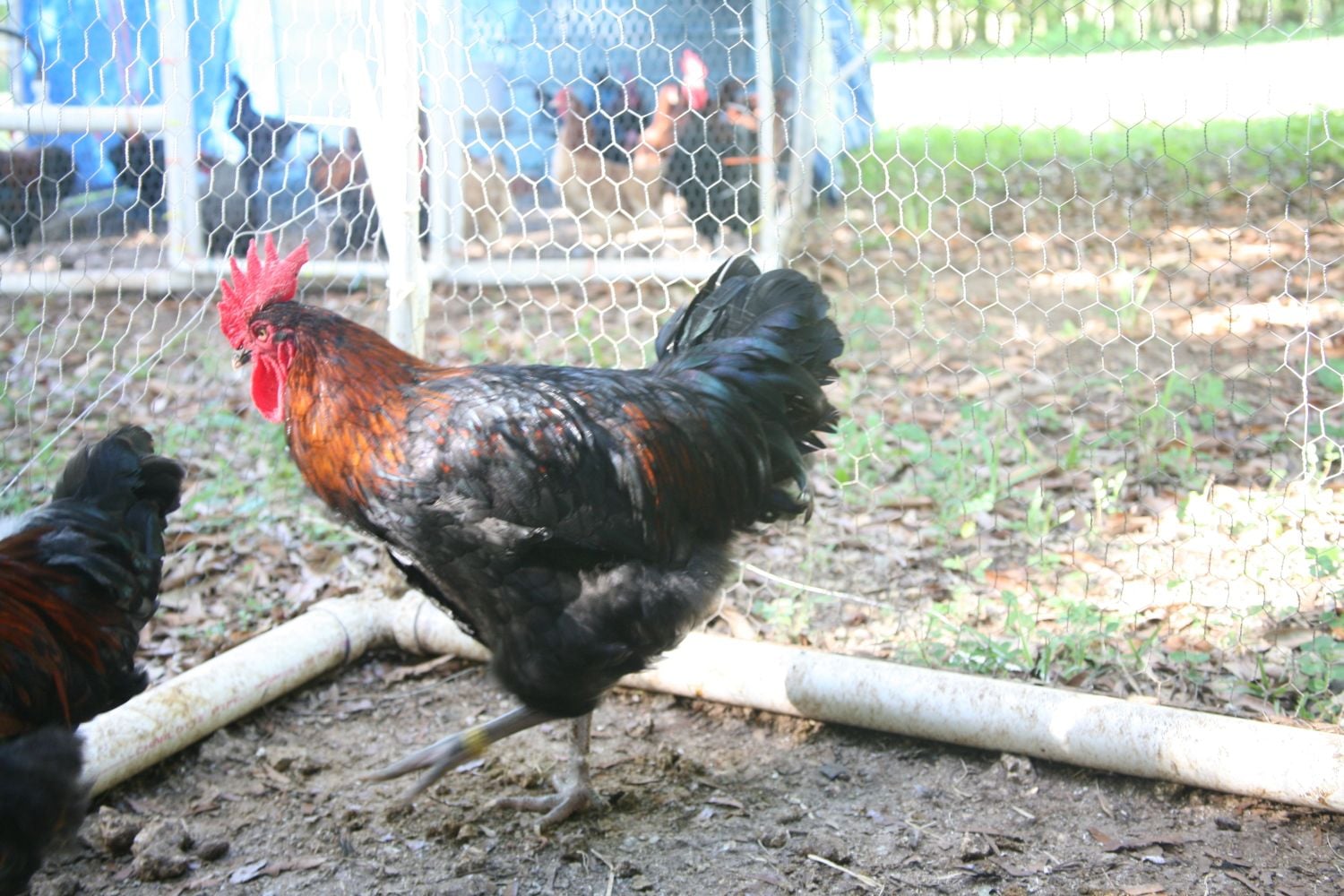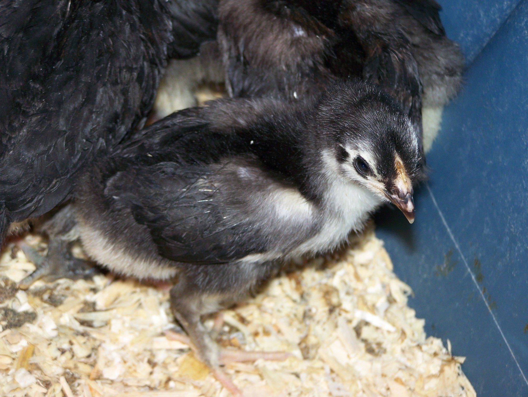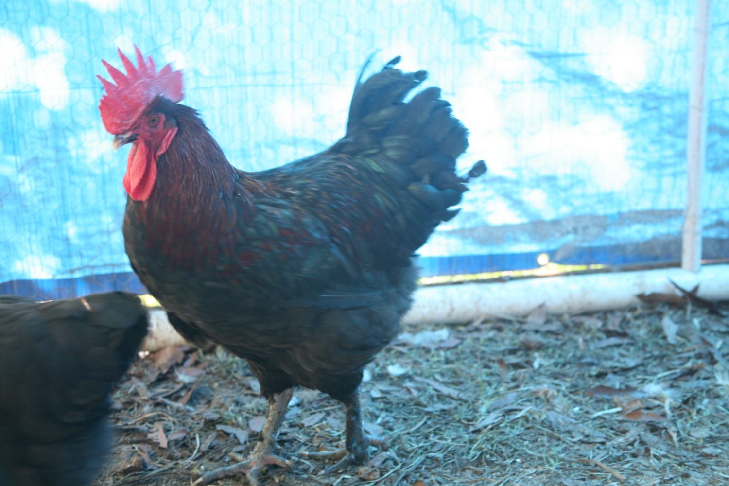 It is hard to see in this photo but this chick has a greenish black comb and has more feathers and is getting its tail feathers faster than a lot of the others.