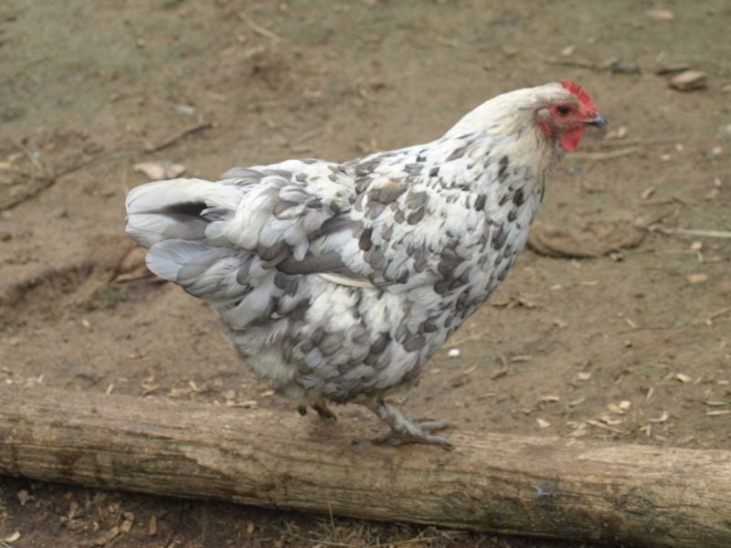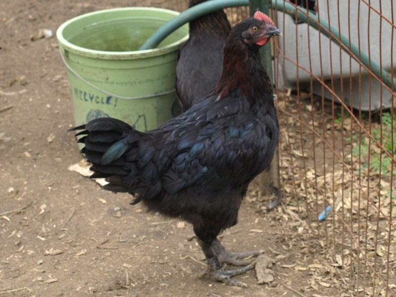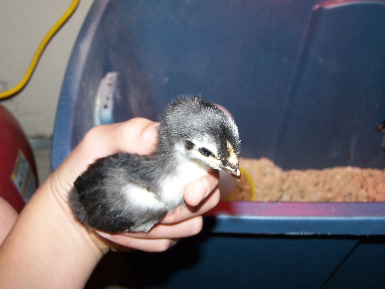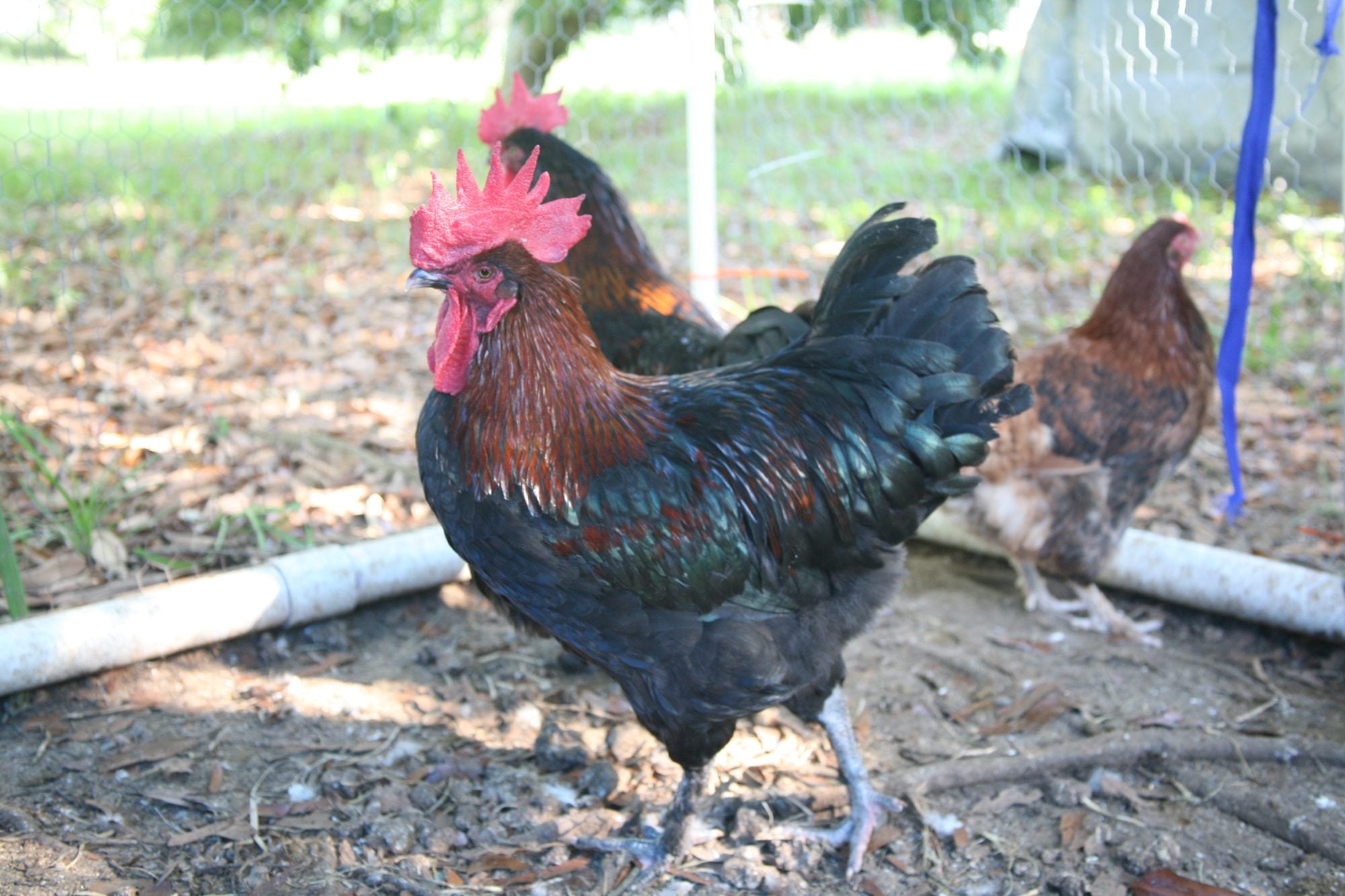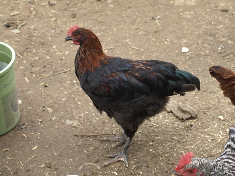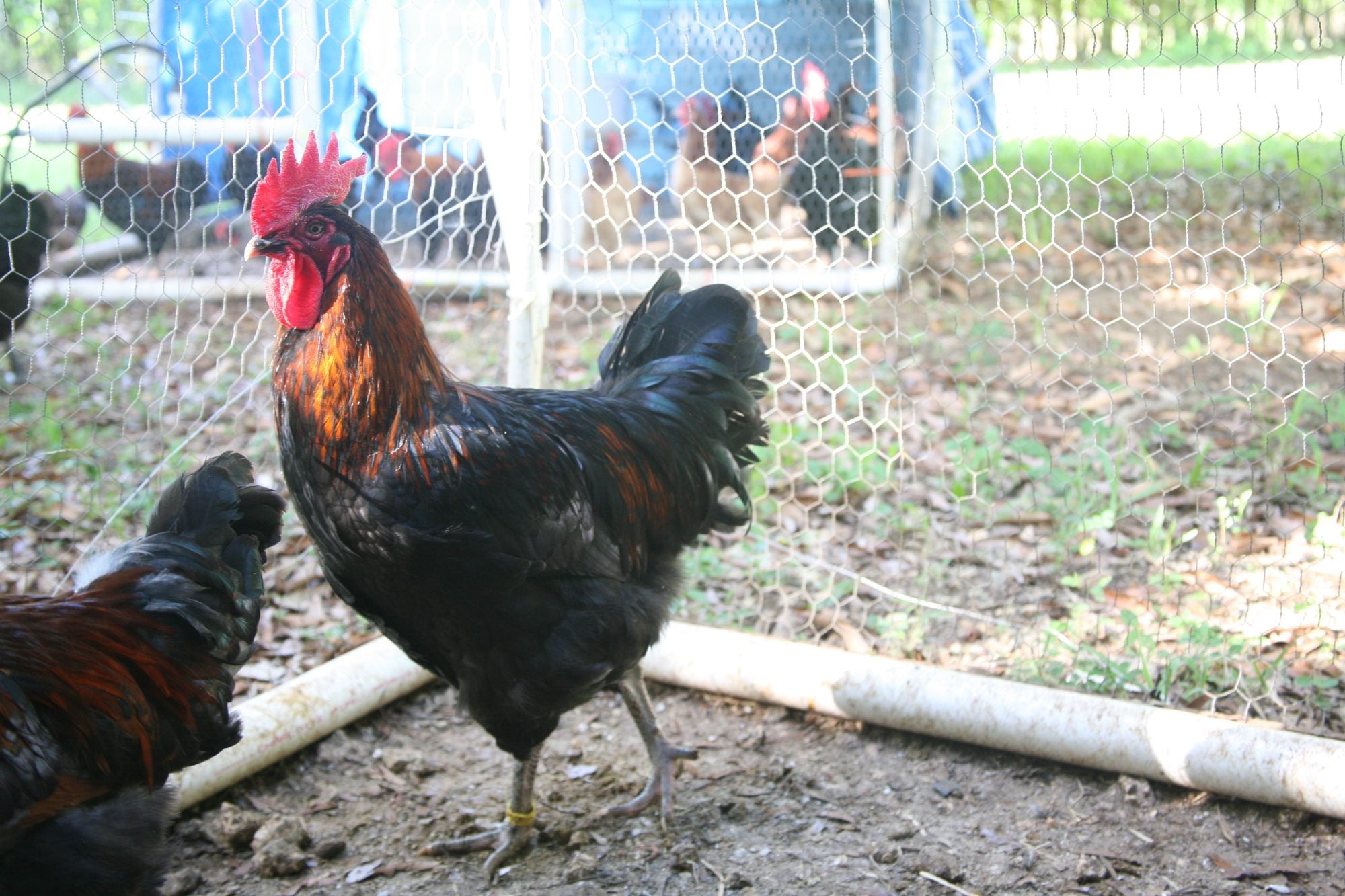 It is hard to see in this photo but this chick has a greenish black comb and has more feathers and is getting its tail feathers faster than a lot of the others.