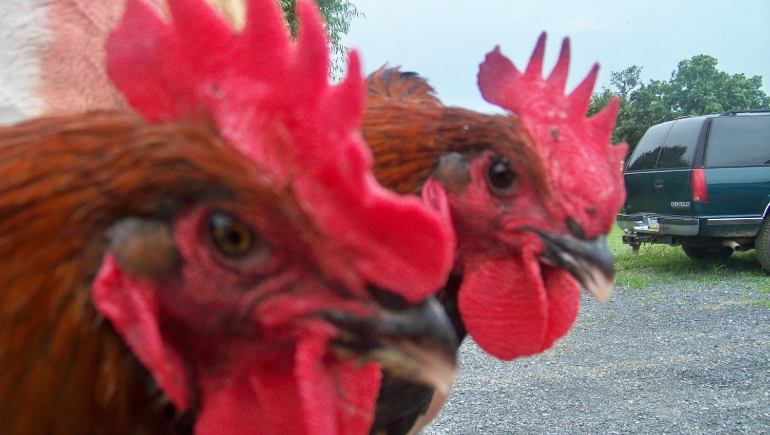 I hope these are the same two roos DH was holding ( We have 13 in the pen so you understand the confusion.) Ignore any with a yellow tag: we have already nixed that one. Pink tags mean =possible keepers. The heavier one of these roos holds his tail a bit straighter up and I fear it is too high. This strain doesn't have mossiness in the chest so we don't need to cull for that.