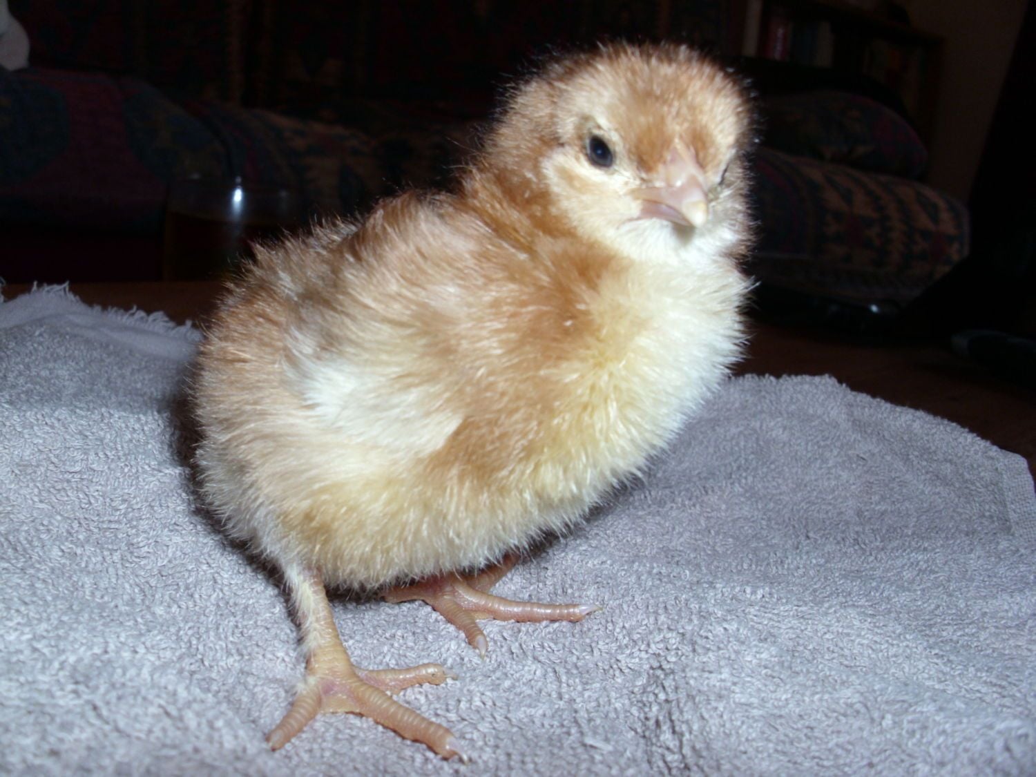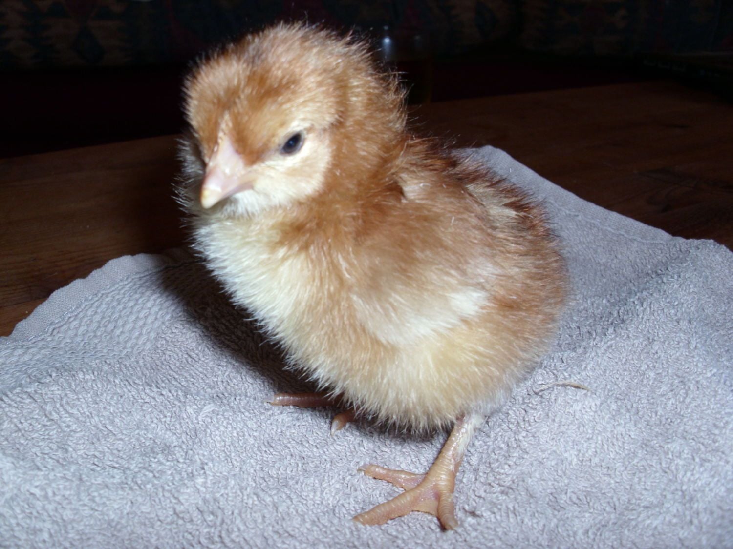 It really is a beautiful chick and the colours do not show as brightly with my camera but she is orange.