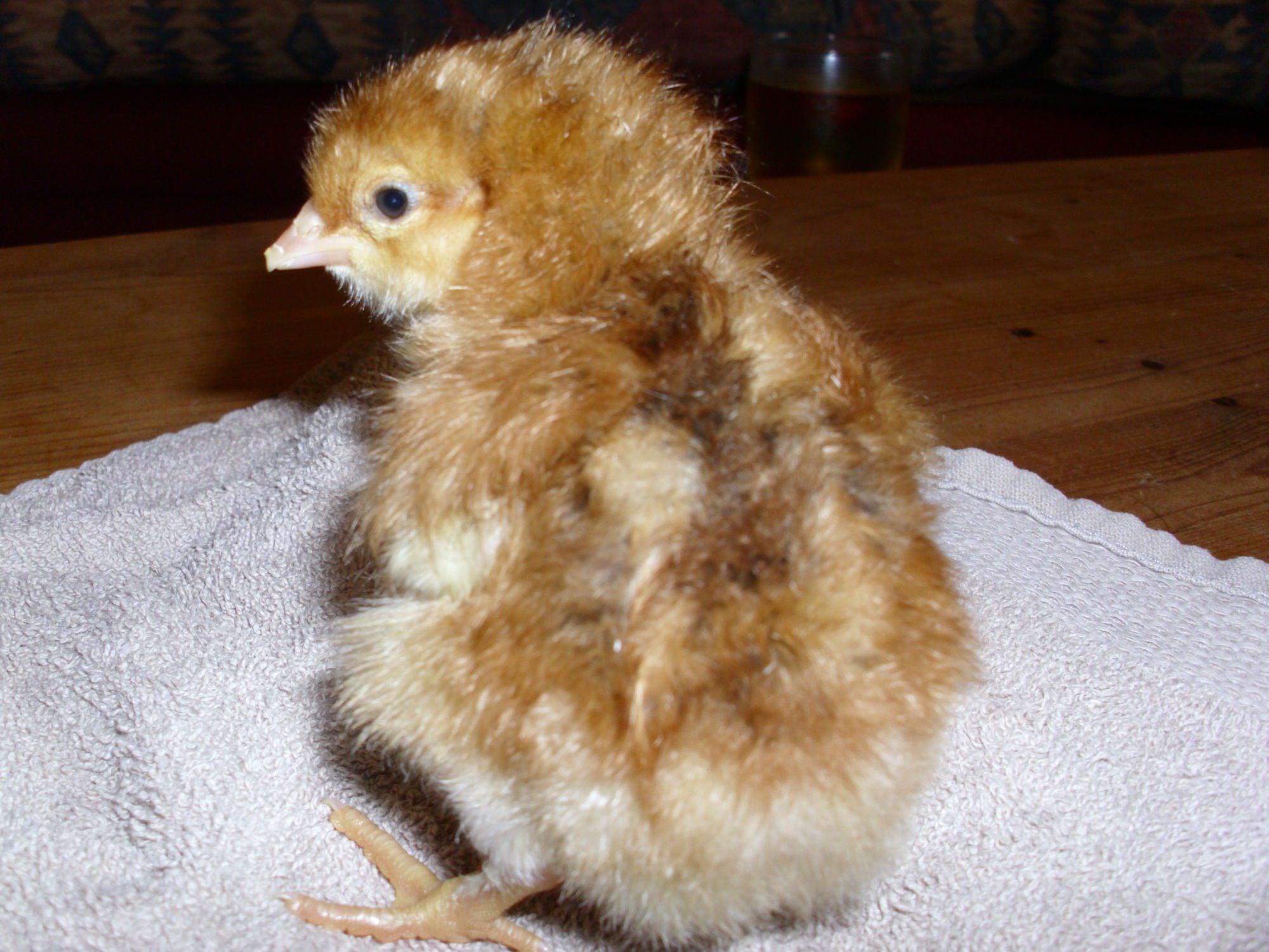Thanks for the replies. This morning she is all fluffy and dried out and looks really pretty with a little bit of dark brown on her back and wings. The wing tips have some white on them like the black chicks. Will try to get some better pics when she is in the brooder. I have never had BCM before so am interested to see how she turns out.