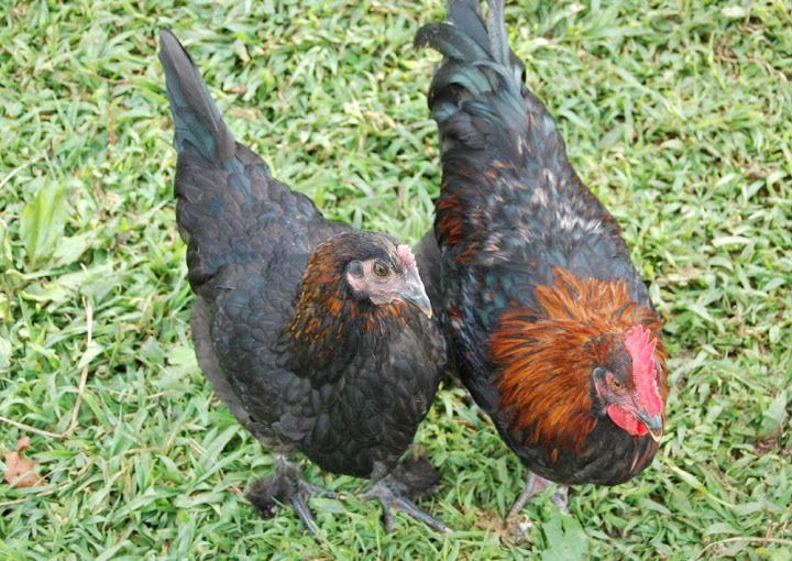 Heres a better one, one of there combs is bigger than the other the one with the bigger comb is a bit bigger as well they are the same age