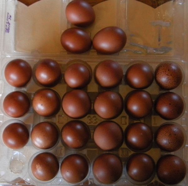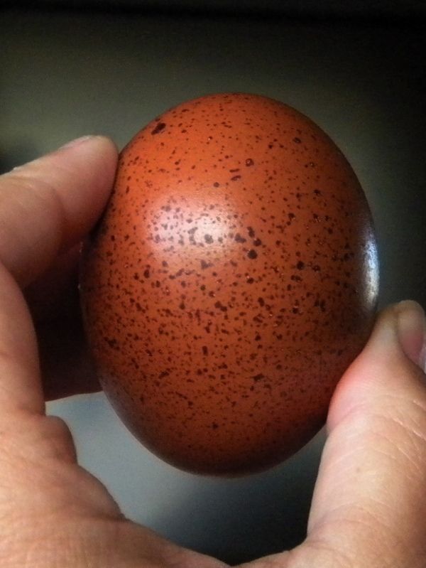 Eggs, finally. Not as dark as hoped for, but not complaining.