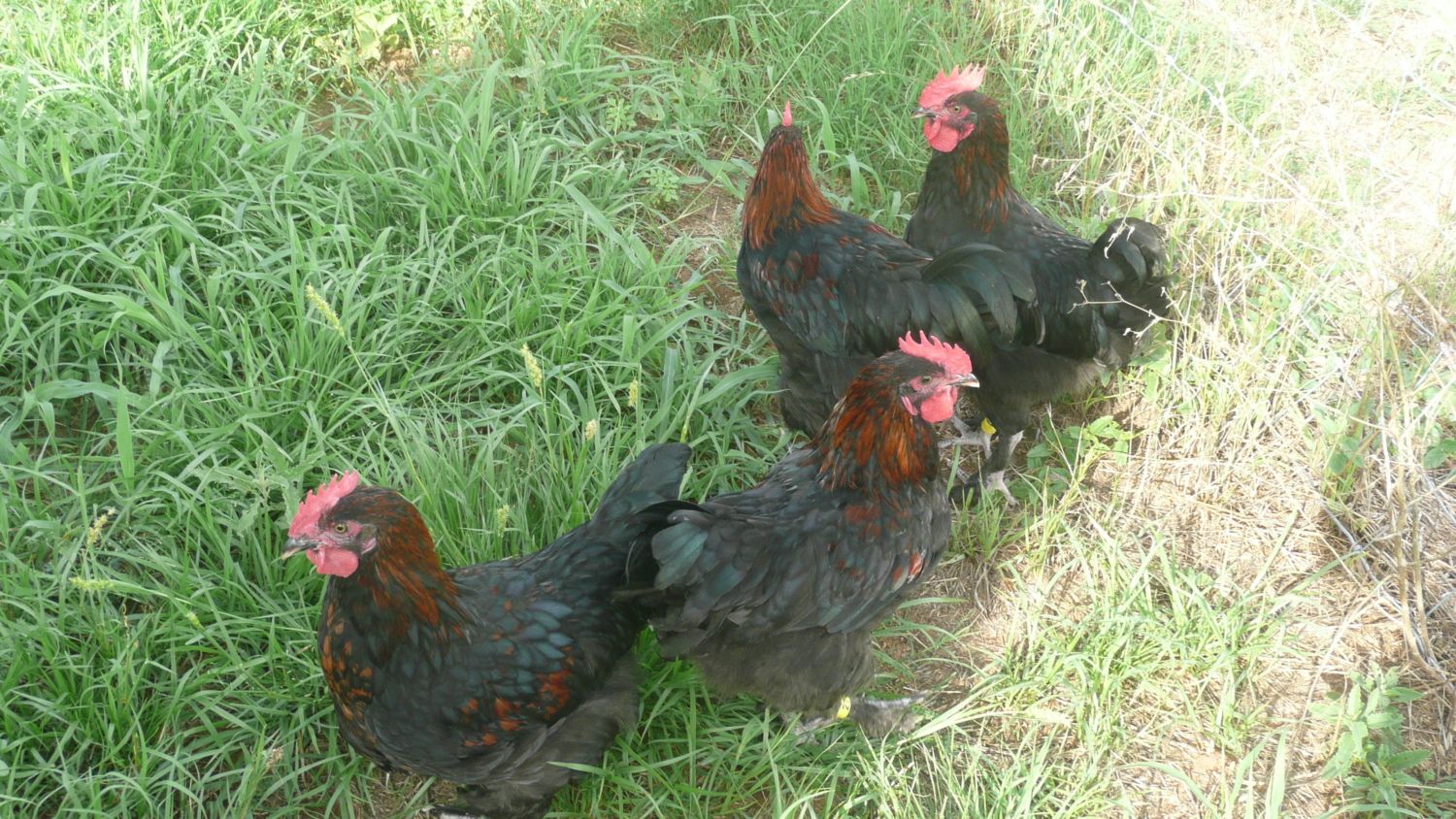 Here are the same birds group of four cockerel at 10 weeks old. They had quite a bit of copper by then on the hackles