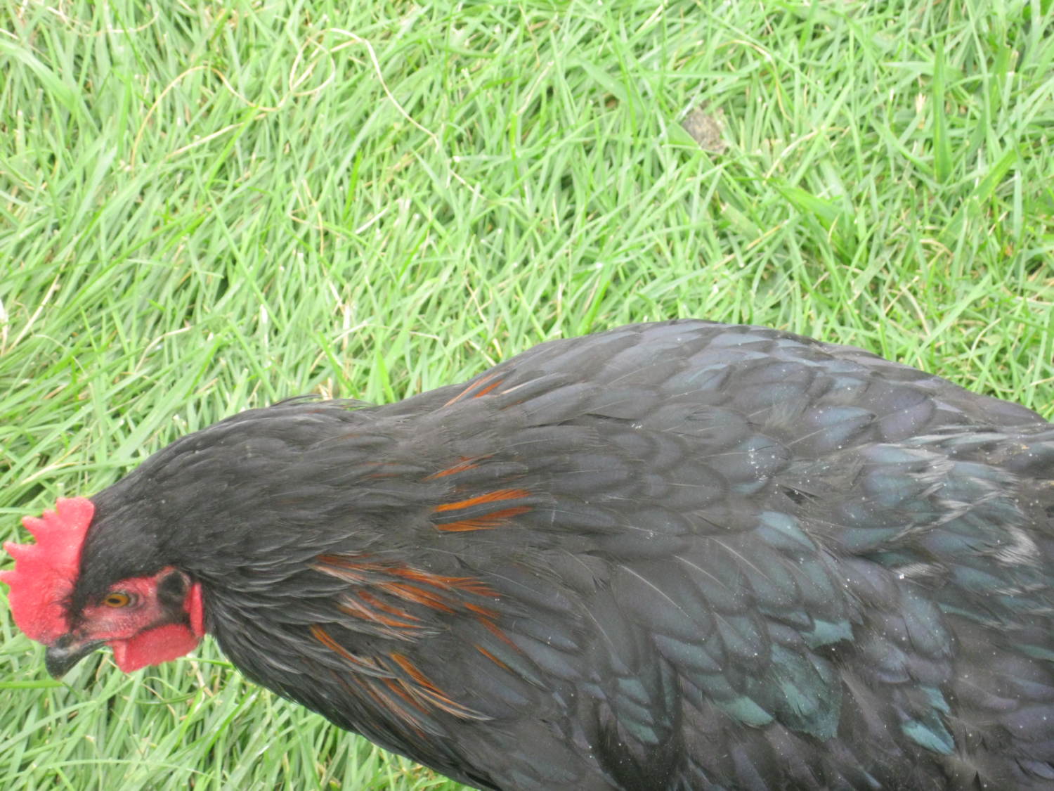 The cockerel was hatched with a tiny copper spot on his head, off to the side. At this stage of development, he is mostly black with some light coppering on his hackles. He has the reddest comb of all of the cockerels I hatched this season (other breeds...Australorp and Speckled Sussex). At what age should I start seeing the copper really coming through on him? If I understand correctly, an adult cock bird would have a pretty good amount of copper color.