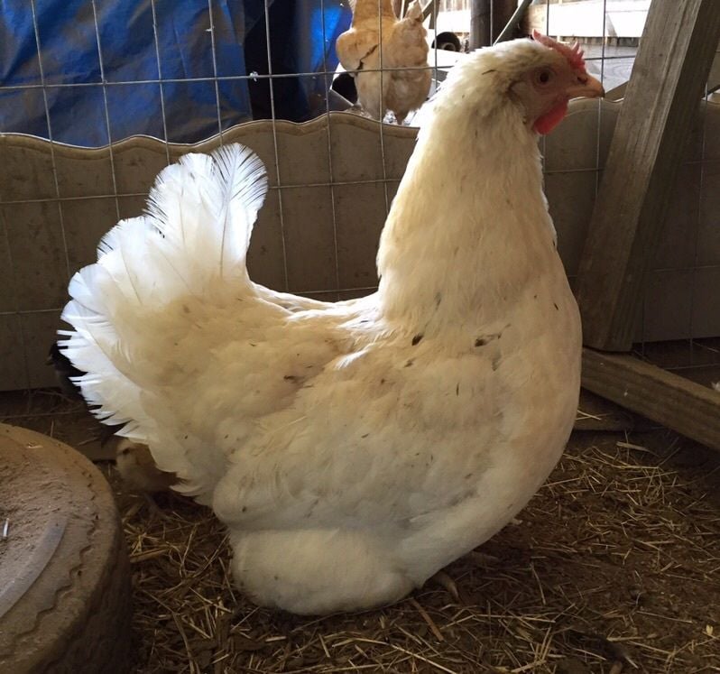 specks showing and a heavier build than my pure brown leghorn. She