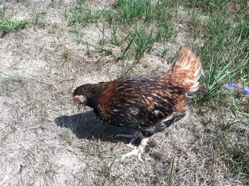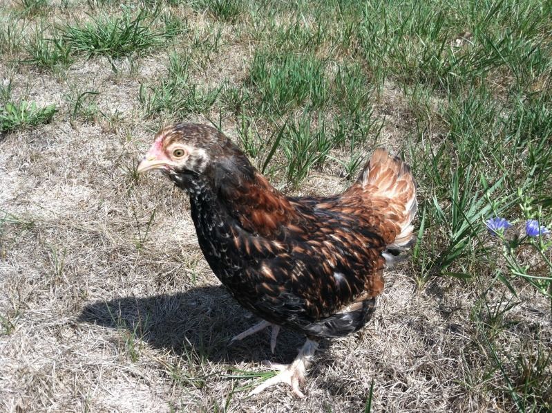 I have two Salmon Faverolles hens that the tail end has the common cream and Salmon coloring but as you got up the body to the head, it seems a black coloring gene has become dominant. There is heavy black lacing around the hackles and cape, and a dark head. Personally have not seen this before and thought I would share.