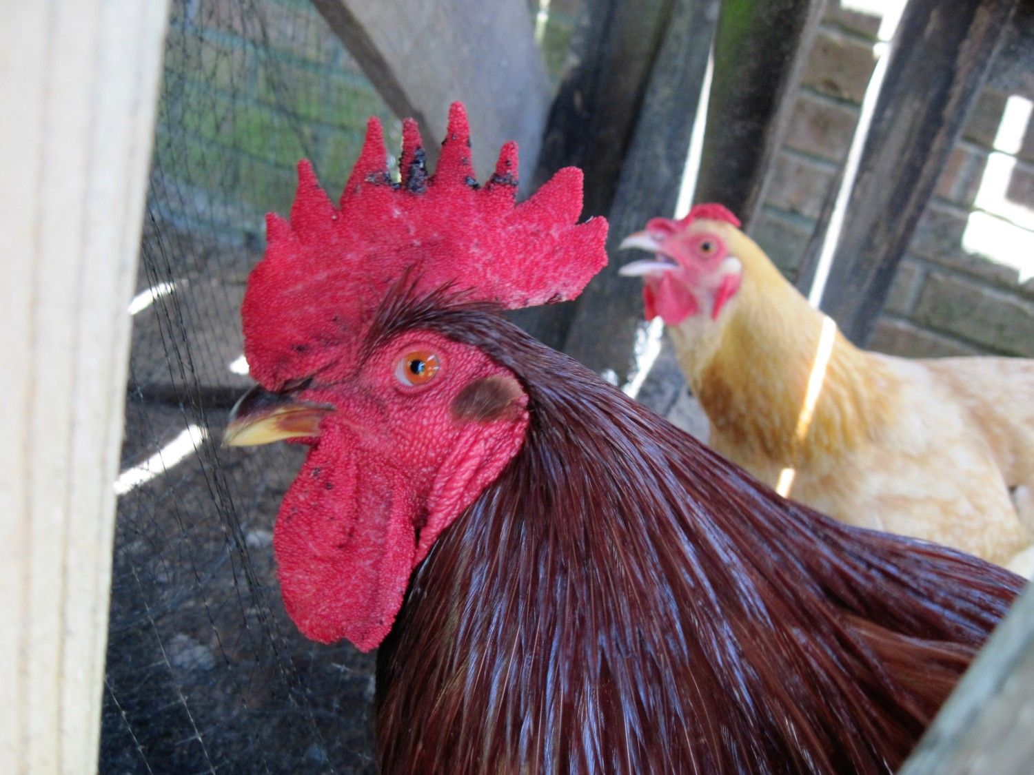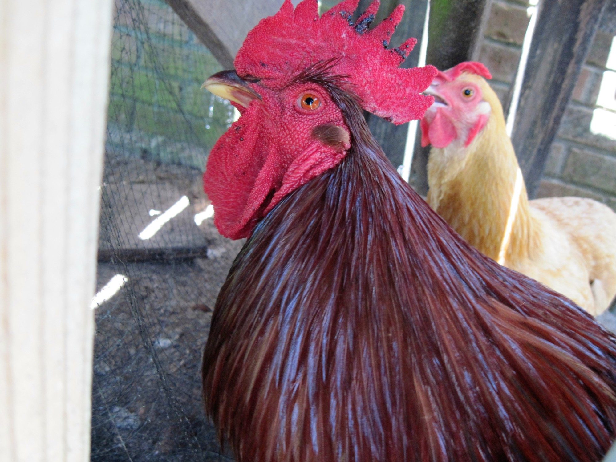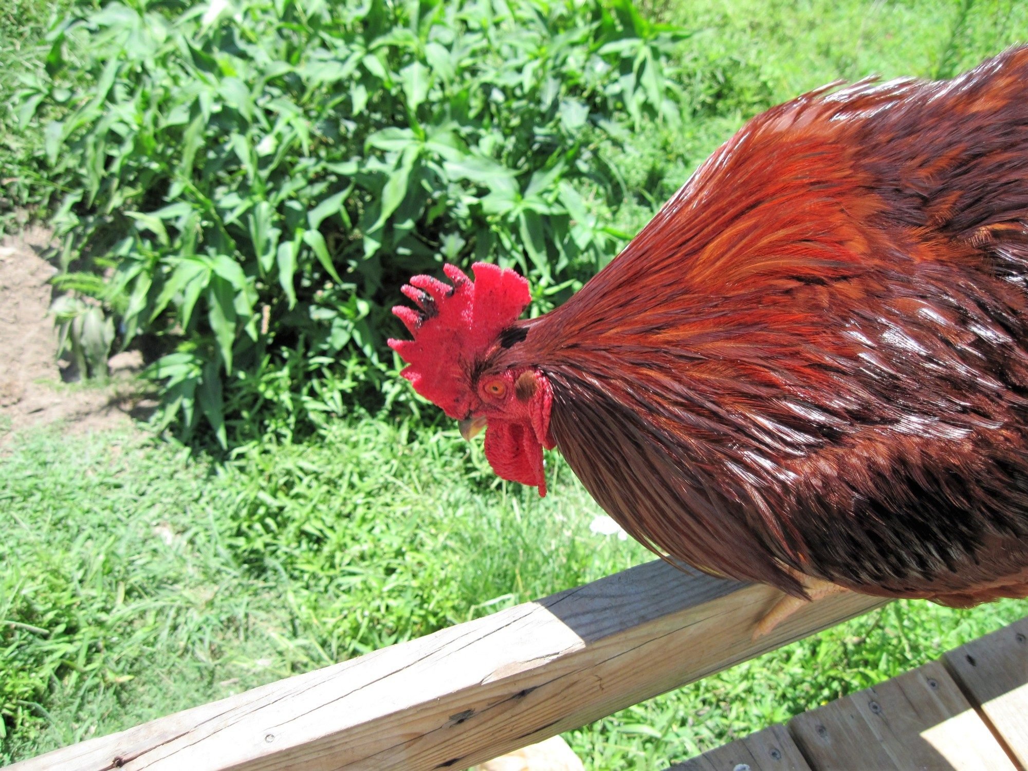 He is acting very normal except maybe a bit lethargic I think because of the heat. Heat index has been over 100 for a week now. He still runs around and protects his girls, finds them food, calls for them, and of course does his manly thing.