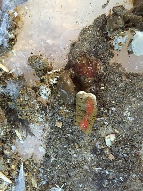 I found this poop in the coop today and I am not sure what the redish/white part is. Thank you in advance!