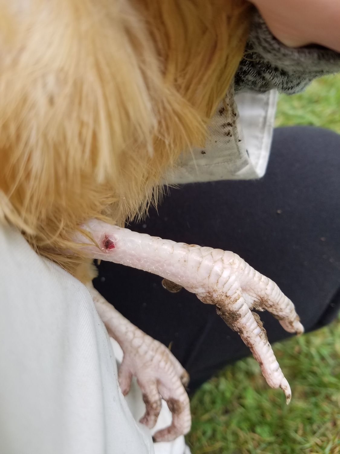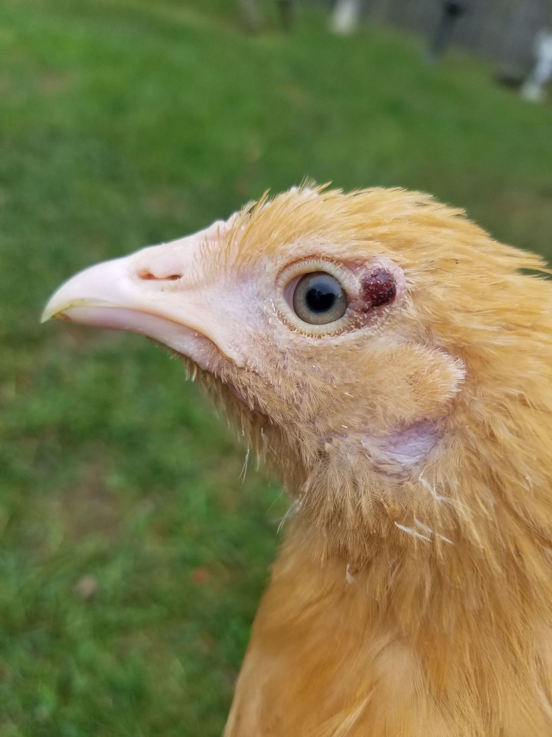 This is my 16 week old buff Orpington chick I've had for about a week and I'm concerned with this scabs. Anyone know what I might be dealing with here?