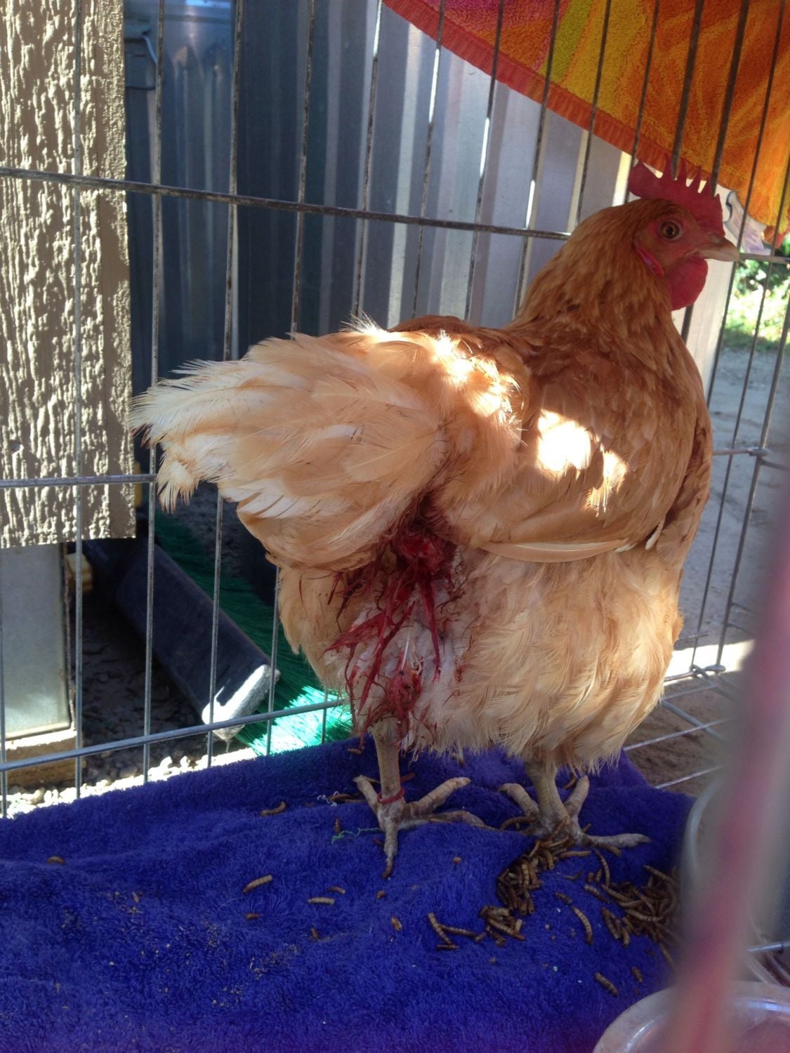 We ended up putting her in a cozy kennel. Washing her off. I trimmed her up. Kept her still and fed her ACV, sea kelp in plain yogurt, eggs, tomatoes and oyster shells. We just moved her back cause her comb ended up dropping but some how managed to perk back up. ,my only worry is no egg yet and my boss bought battery hens who have runny noses . I also am worried about my flock catching 1/2 or both these things. What ever it was that happened to her. When I see a egg I'll be happier. I checked her to make sure she wasn't egg bound. Thank you! What ended up hApping with your? No ducks around.I hope your chicken is okay. Sorry I haven't seen this until now. I ended up having to take mine to a vet but her vent wasn't quite this bloody.