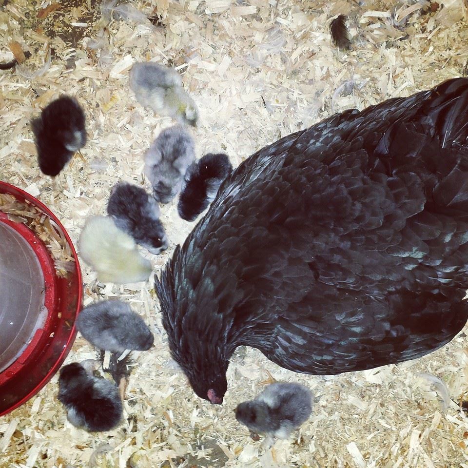 I'm not completely sure, but I think that I see three blacks (the darkest ones), four blue ones (bluish color, lighter than the blacks), and two splashes (lightest chicks).