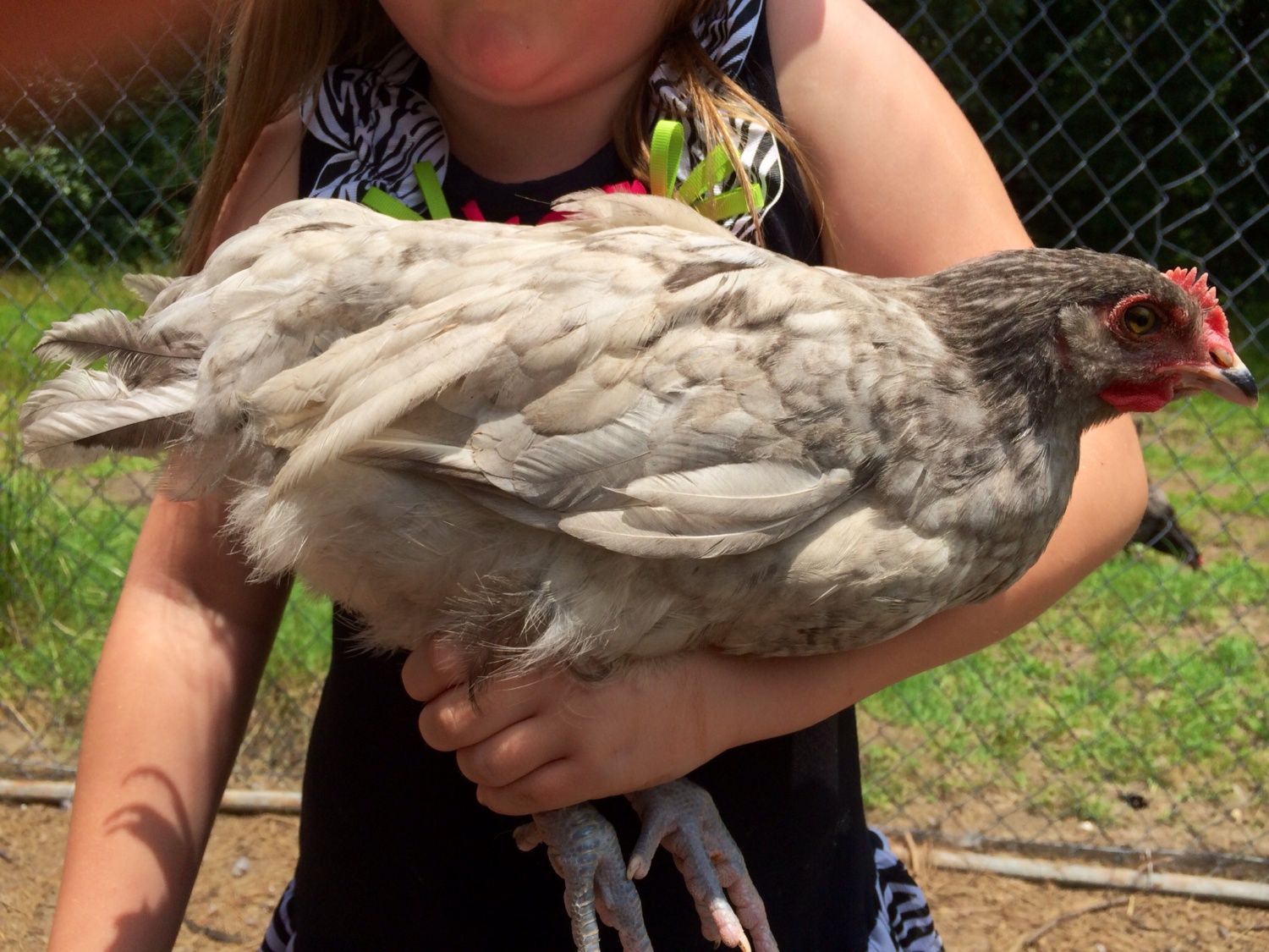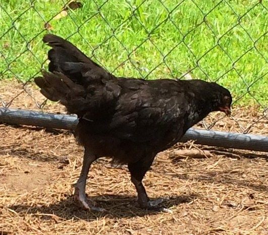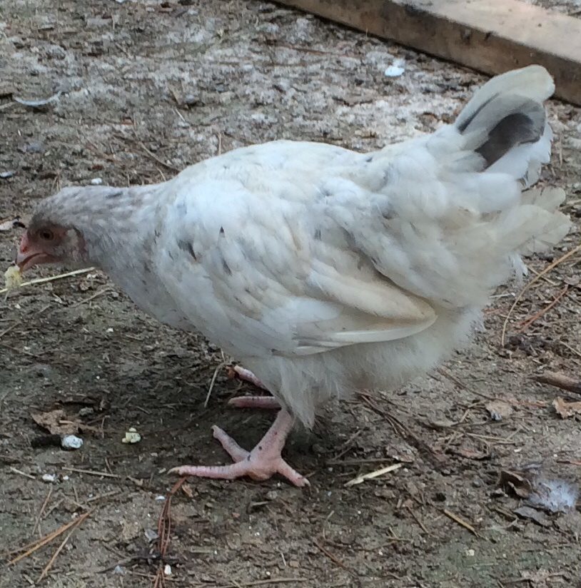 Hi, She doesn't appear to have any feathers on the shanks or feet from looking at the picture. What color of Marans was she produced from. From what I see of the type she looks very nice. Don