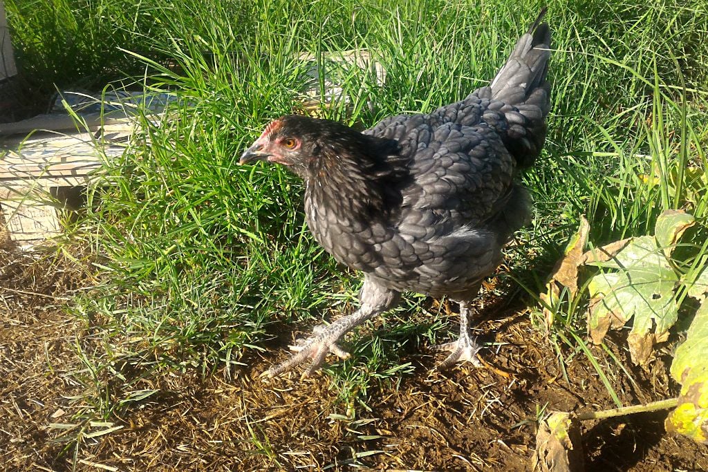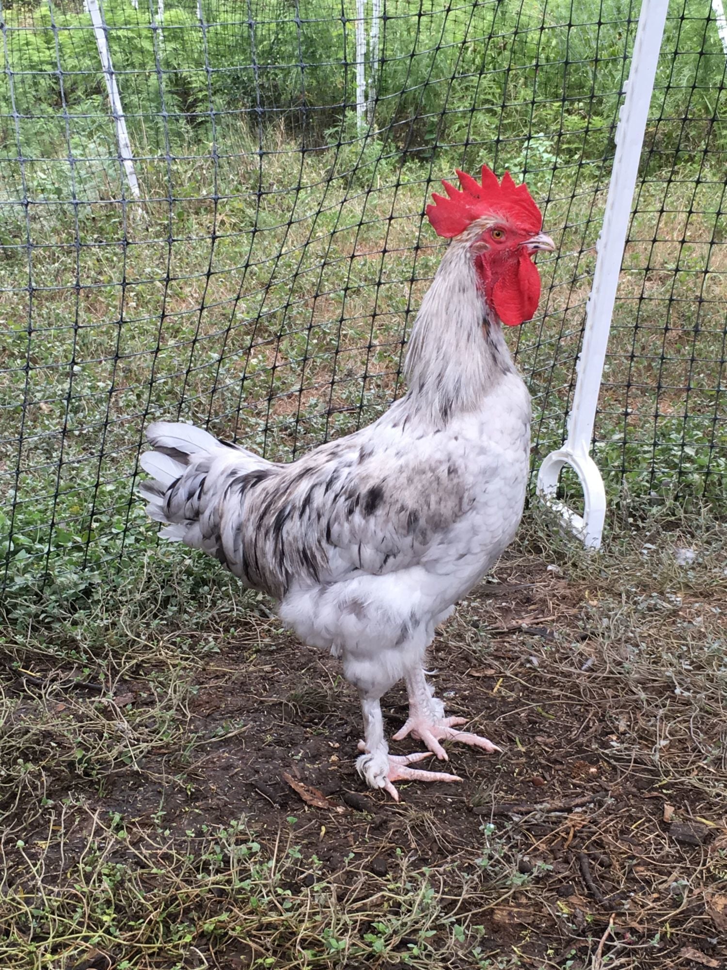 Handsome and stately!Howdy, folks! I tried to do a read back of the whole thread, but ran out of steam somewhere around page 130. I have some delightful copper marans I got from Eight Acres this spring - all blues except one splash and two blacks. As they grew, I ended up with four pullets (three blue copper and one black copper), and five cockerels (three blue copper, one black copper, one splash). As I already have my hands full with a number of other projects, and am a victim of chicken math, I had decided that I wasn't going to keep any cockerels, and just keep the pullets for laying. But the splash cockerel ended up being impressive enough to me that I decided to keep him after all. He was a very respectable 5.28 lbs at 16 weeks, and now at 17 weeks is heavier than the biggest of the very nice big German New Hampshire boys, and he's most certainly top of the pecking order. Thought I'd share a photo. His name is Chunky Monkey. (Caught him here immediately pre-crow). There's some molting going on, but he doesn't look too bad. My favorite part is the black spots on his beak.![]()