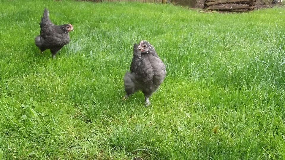 The 2 pink banded pullets are huge! Also, upon inspection yesterday afternoon, they are both showing copper in the hackles.