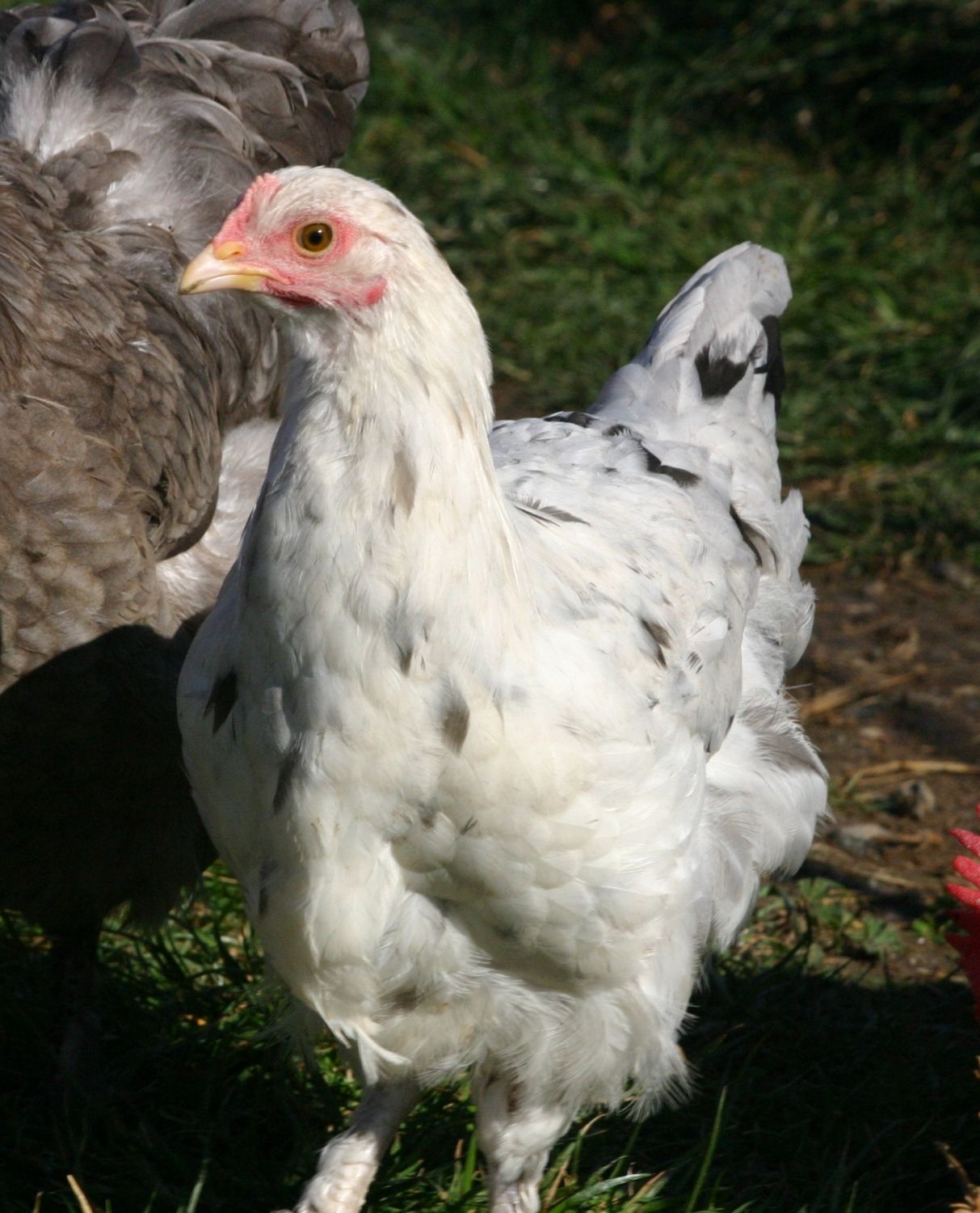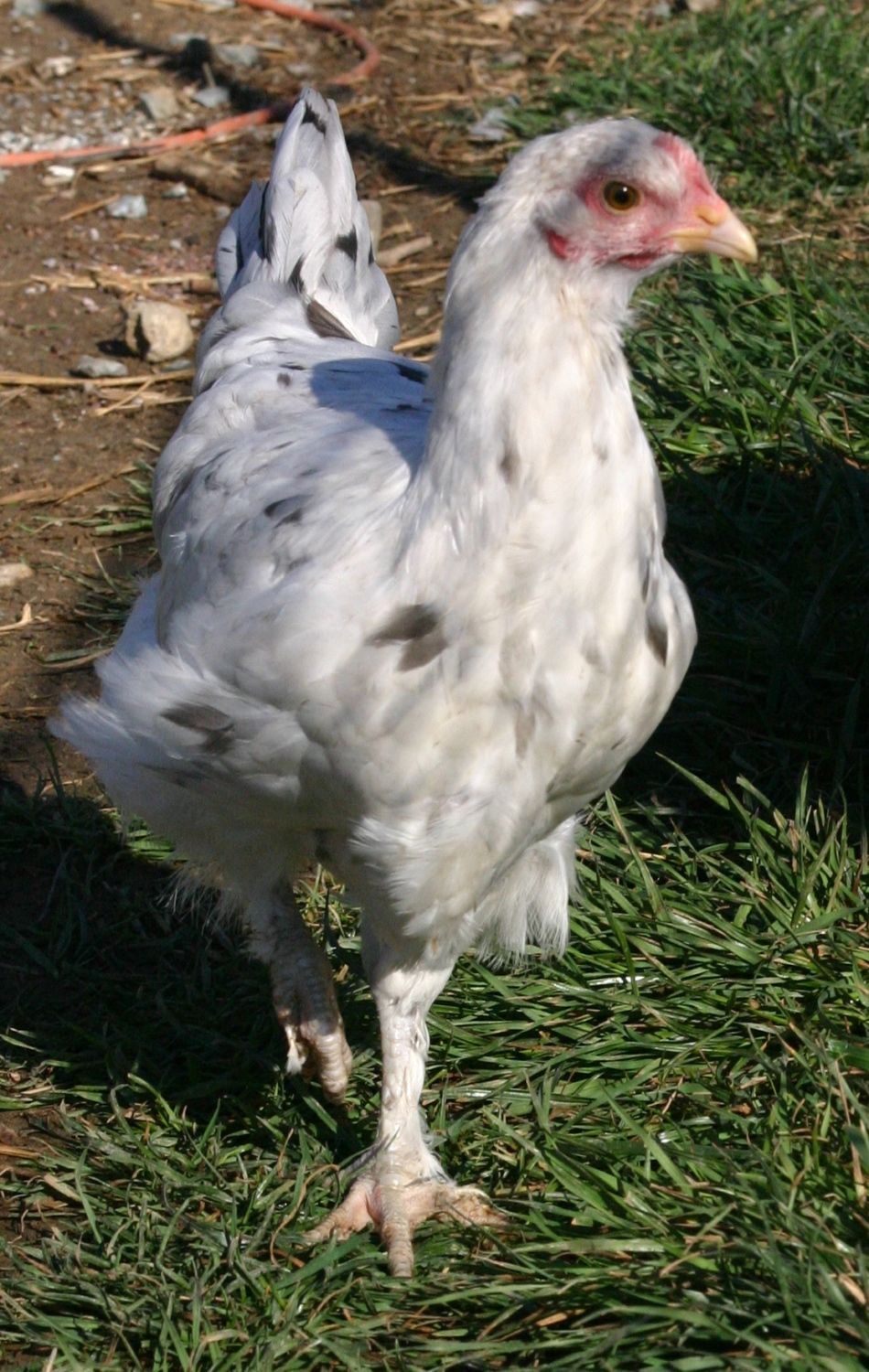 Could I possibly get some input on this 9 week pullet. I think she's nice, but I wanted experts opinion. I want to know what I need to improve on. She actually came from a pretty dark egg herself. Not sure if her eye color is too dark as well. I would greatly appreciate it. It was hard to get pics of her with her head up. Too busy foraging. You may need back side shots too, I'll work on that
