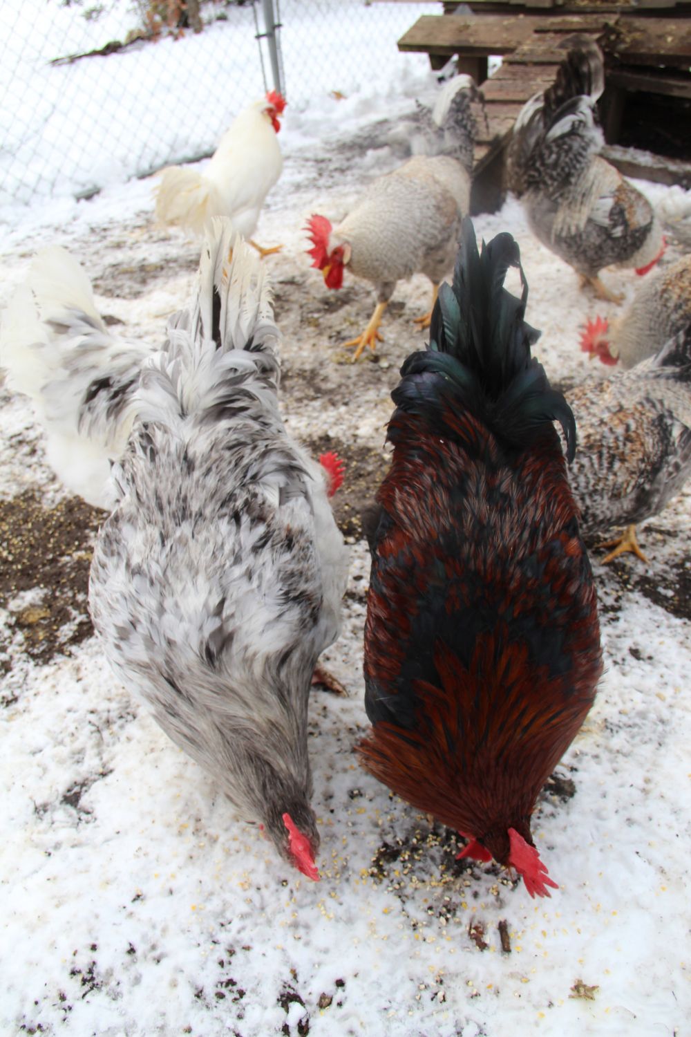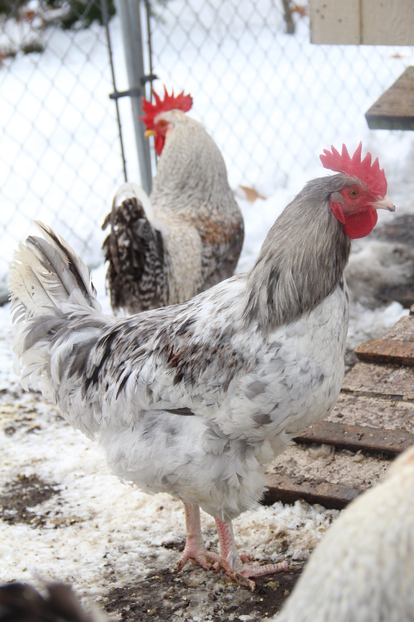 I have a similar issue as above regarding 2 splash roosters from the same hatch. One is darker, bigger but with less feathered legs while the other has less splash overall and is smaller but with much better feathered shanks. smaller boy with less splash pattern look at those shanks but there are feathers on the middle toe both together Bigger and darker boy with more splash patterning egads! where are all those feathers? My 3 boys. I'd love to keep all three but cannot happen. I was told there is an accepted standard for splash game fowl (I believe it was game fowl) but cannot seem to locate. If anyone can direct me to it that would be much appreciated. Thanks.