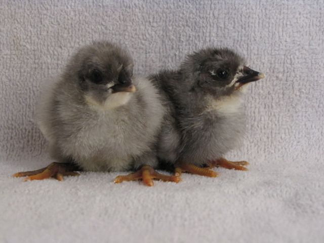 I just hatched out two blue isbars this morning - REALLY pretty chicks. Is there a way to sex them by feather colors/patterns? One is a light grey and the other is a darker grey.