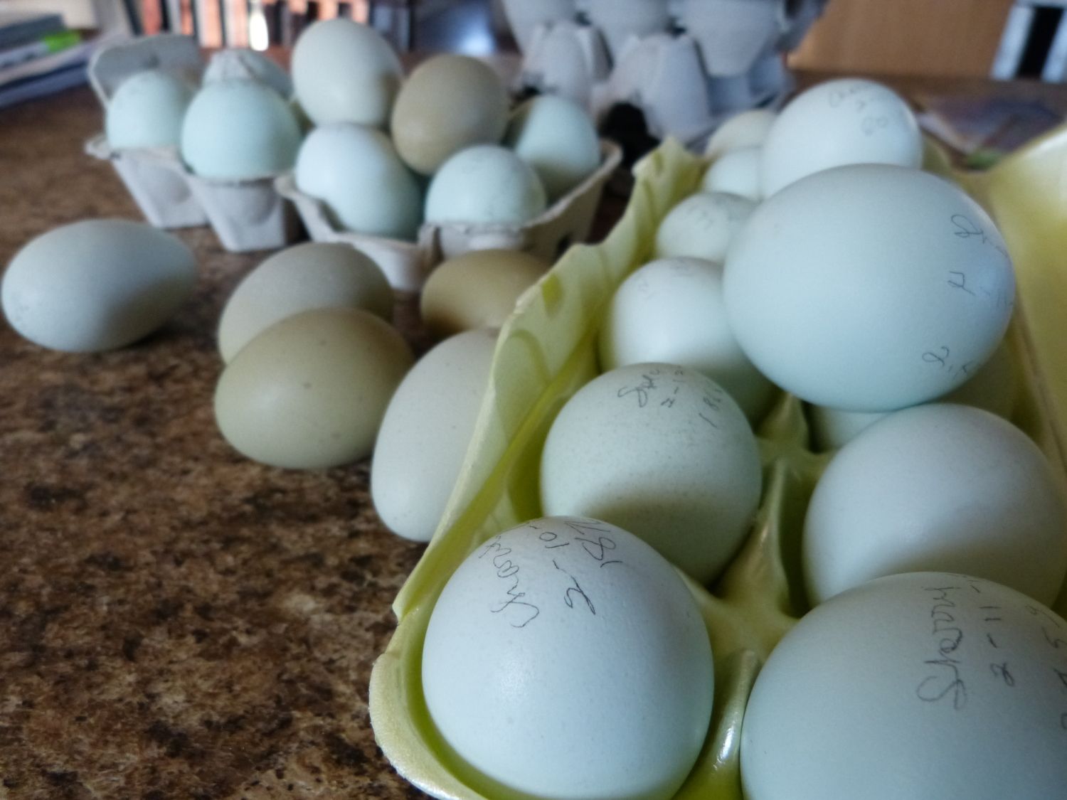 The blues are from my legbars - the greens from my Isbars....