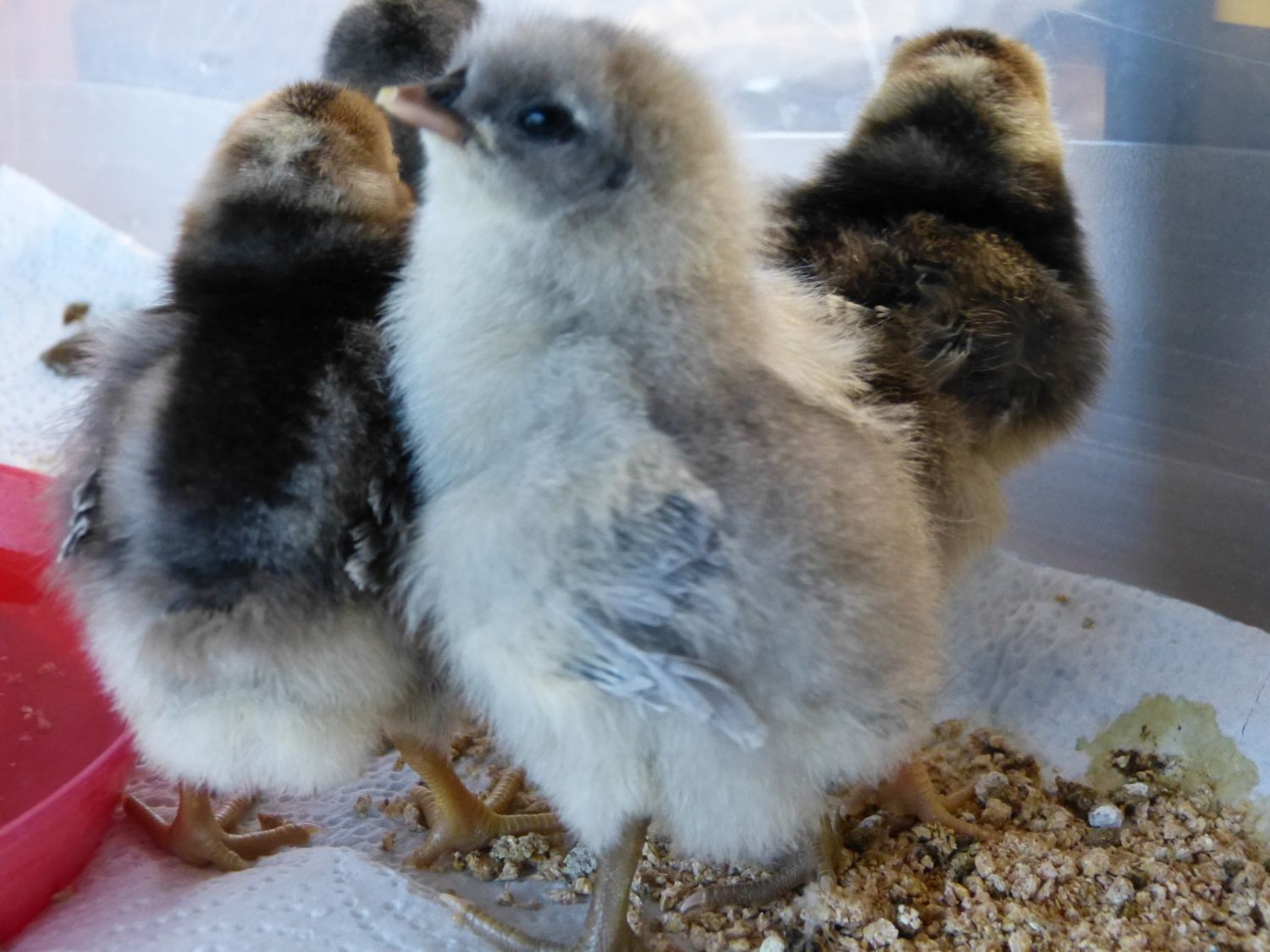 @UrbanMamaHen I know, it was a great hatch for shipped eggs. I got them from Orchard Hill poultry, if I remember correctly, in Georgia. I had thought I had an awesome hatch, because I thought I had 1 cockerel and 6 pullets. But I have discovered that the cockerels seem to develop at different times. I had the 1 obvious cockerel. then about a month later, the other 2 popped up, and now I believe the splash in the picture is also a slow developing roo.