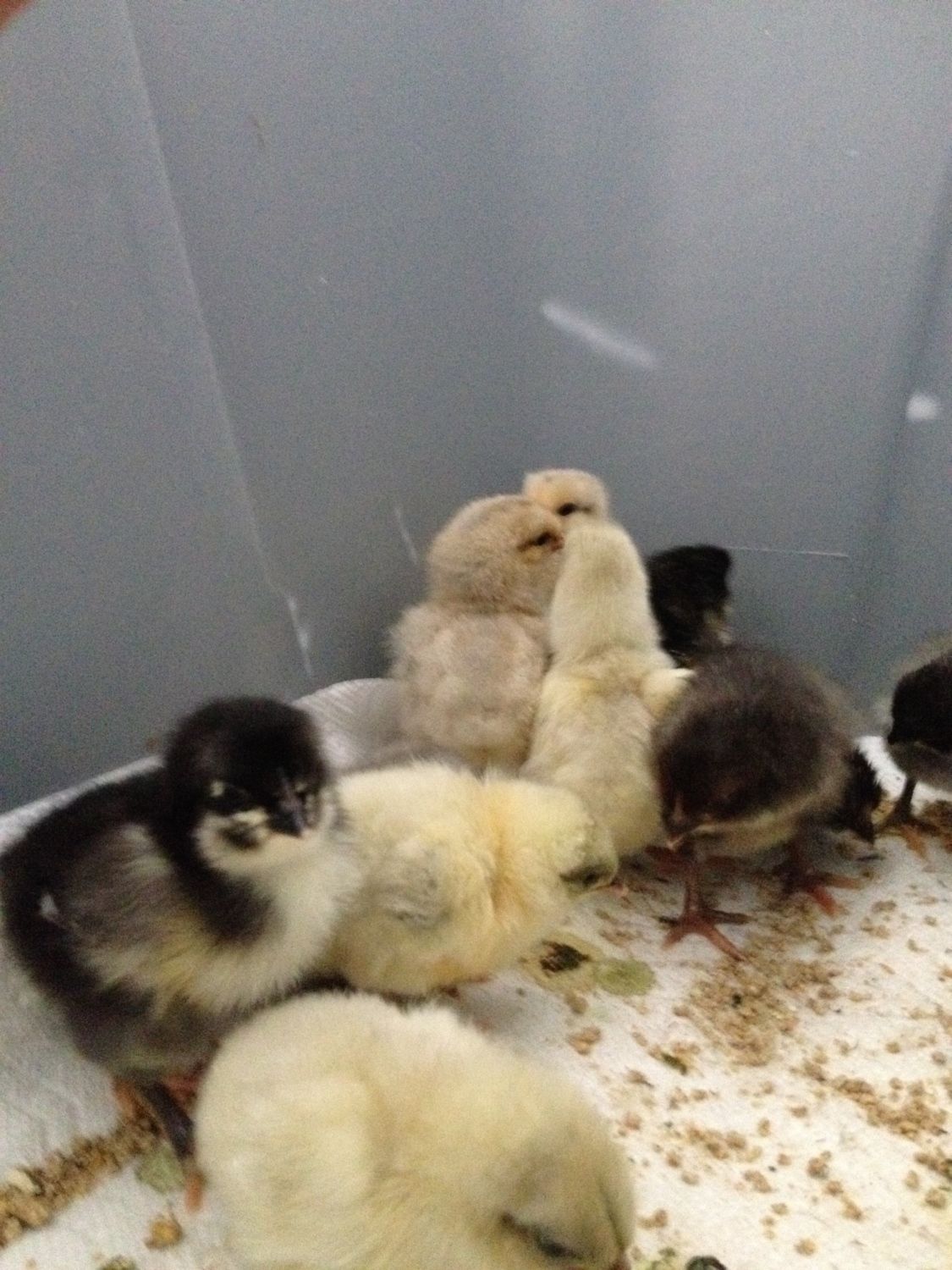 So cute cree75i!!!!! Sooo jealous! Met KYTinpusher today and got a trio of 1st import isbars & 7 eggs which went directly into my incy when I got home. The chicks have settled in after the little splash jumped right out of the brooder & ran across the kitchen table.