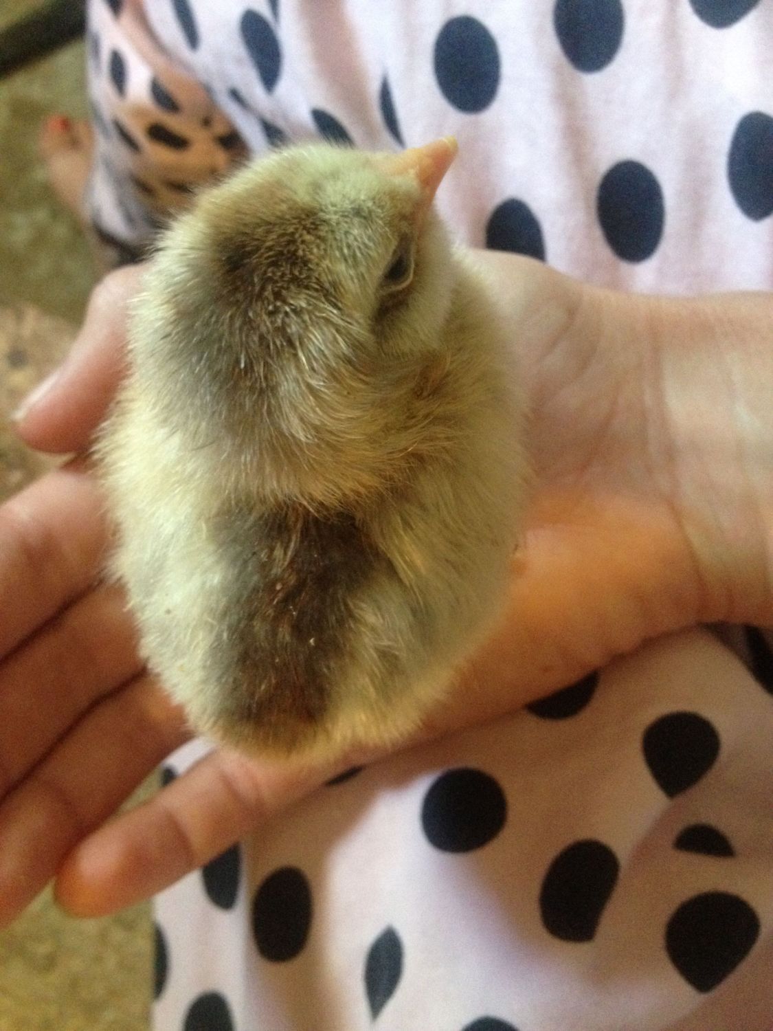 Upon candling of the surprise blue eggs it seemed they were be developing. Several days ago one hatched and it looks lots like a BLR but with puffy cheeks. Here it is: