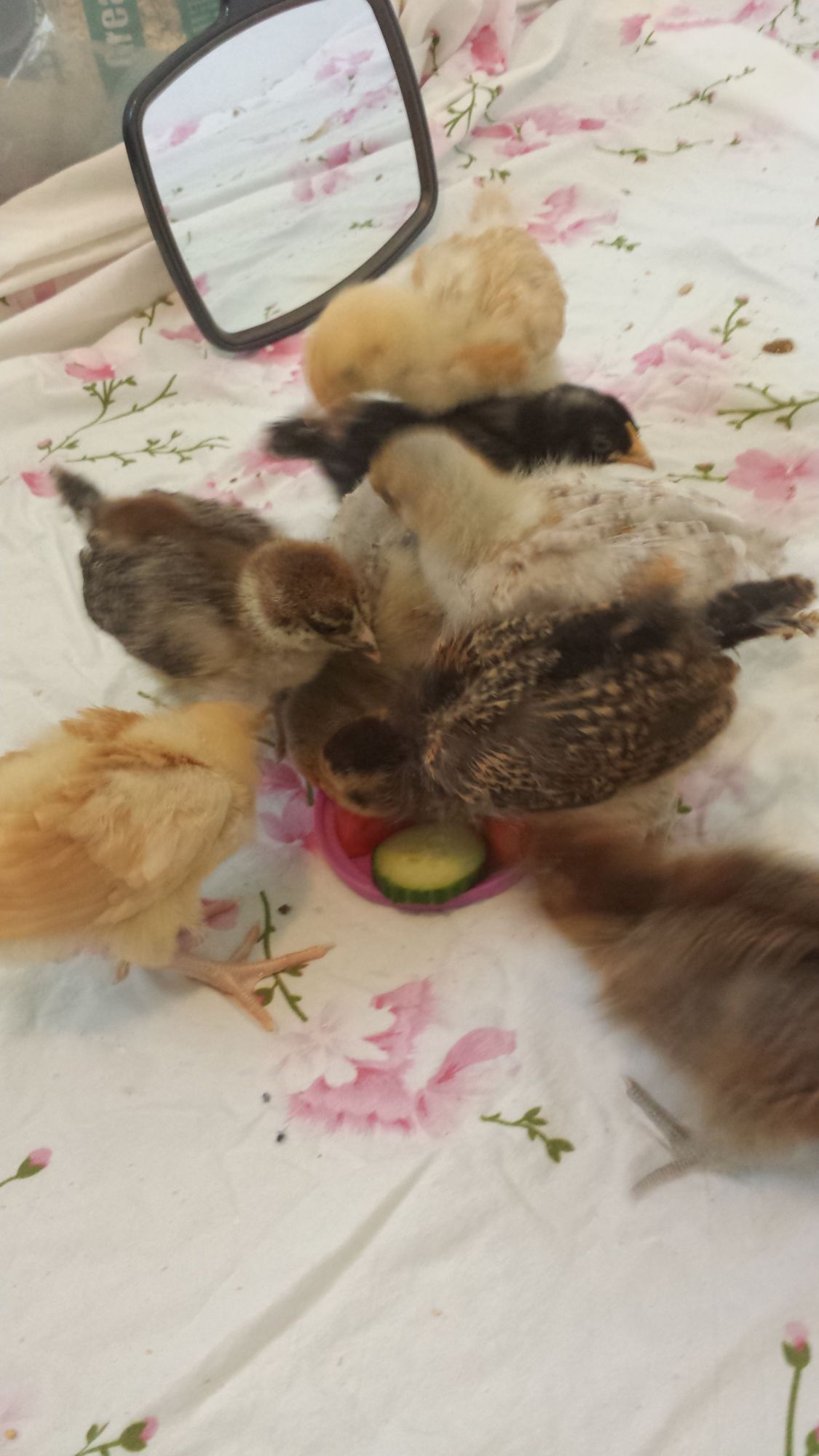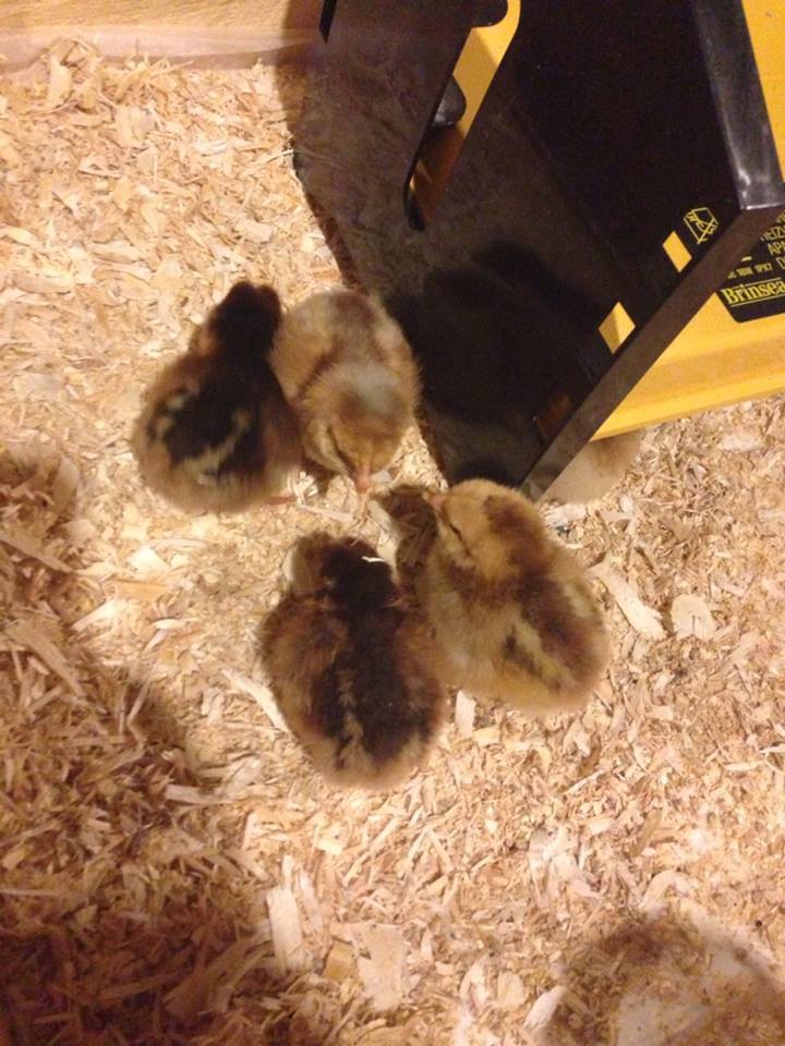 My 5 BLRW chicks, at 1 day old. Are the darker ones usually the black or blue? I figured the lighter colored ones will be splash?