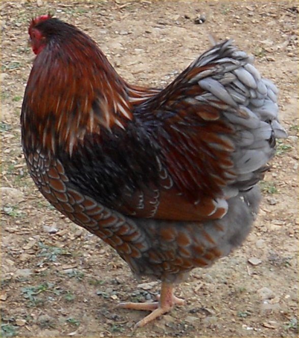 Quote: blue is supposed to have a darker edge to the blue feather, what he has is the blue lacing showing that darker blue edging... on a solid blue bird it's much more noticable. here's a pic i pulled from the cochin thread of someone's birds they posted recently...