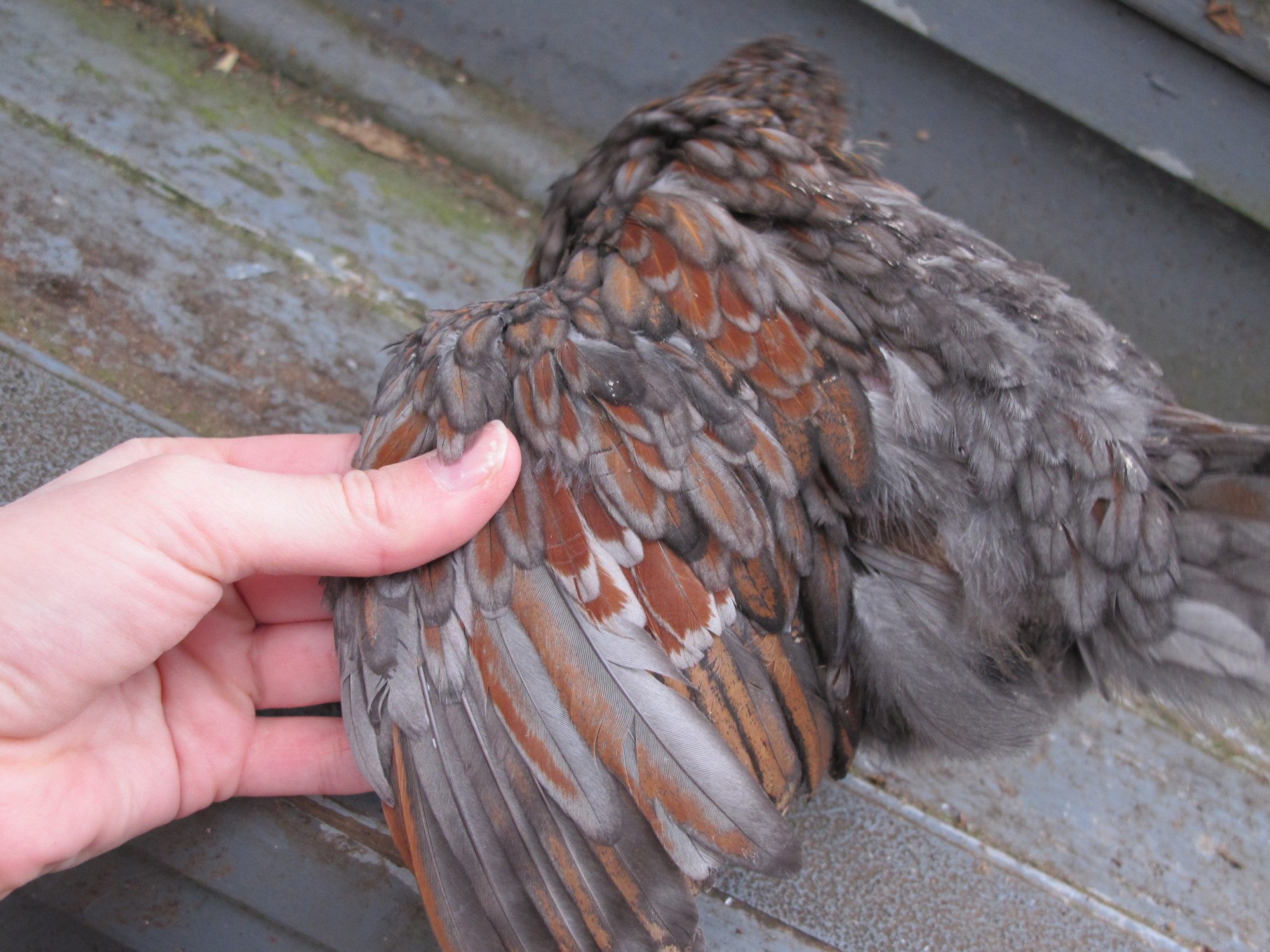 Yes! That's what I was trying to describe. I wasn't referring to hackle or sickle feathers, but rather the actual red color within the feather. Should it be pointed or rounded? Does it matter? Does good lacing make for more rounded red? So many questions! Hahaha, I'm going to drive you guys crazy!