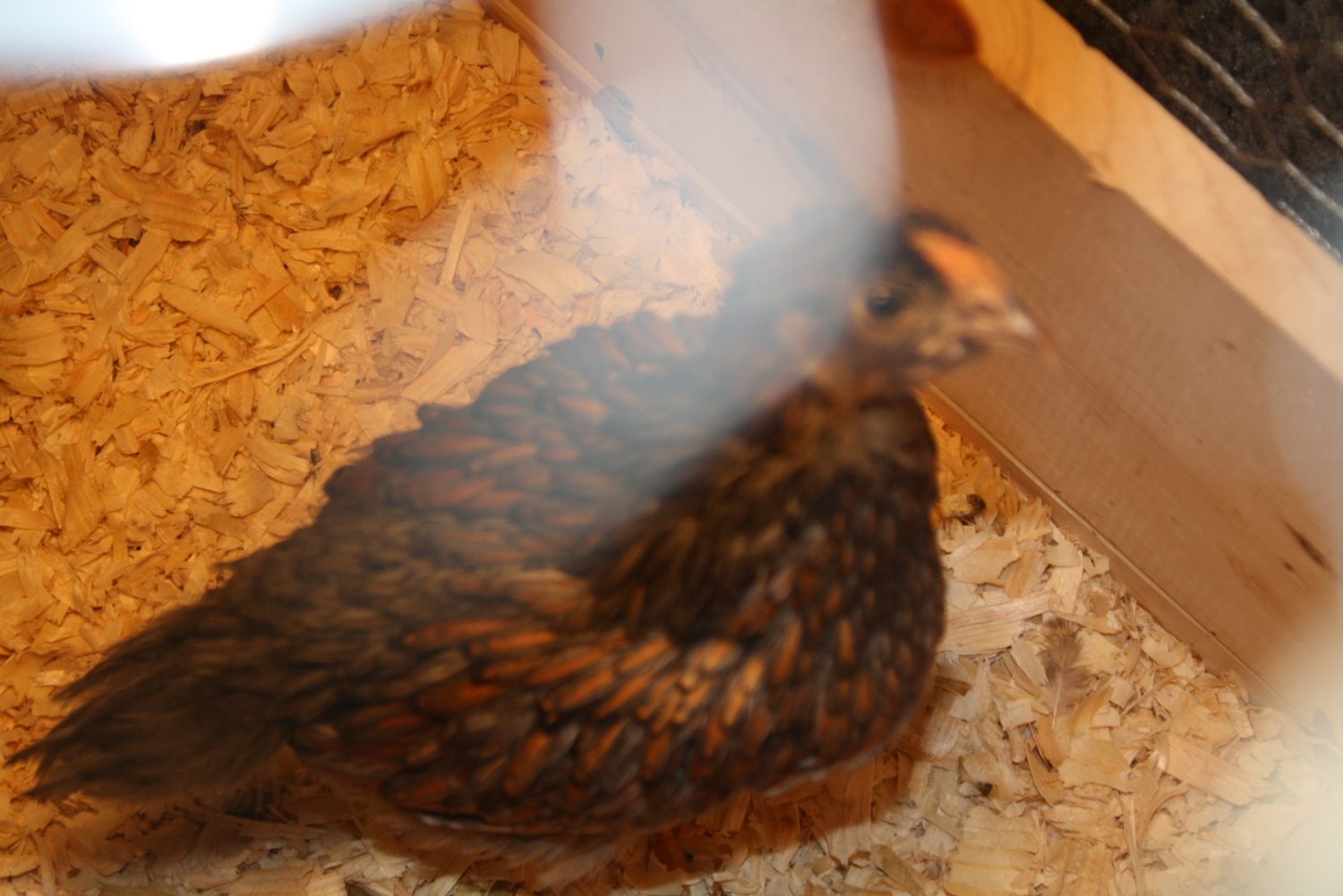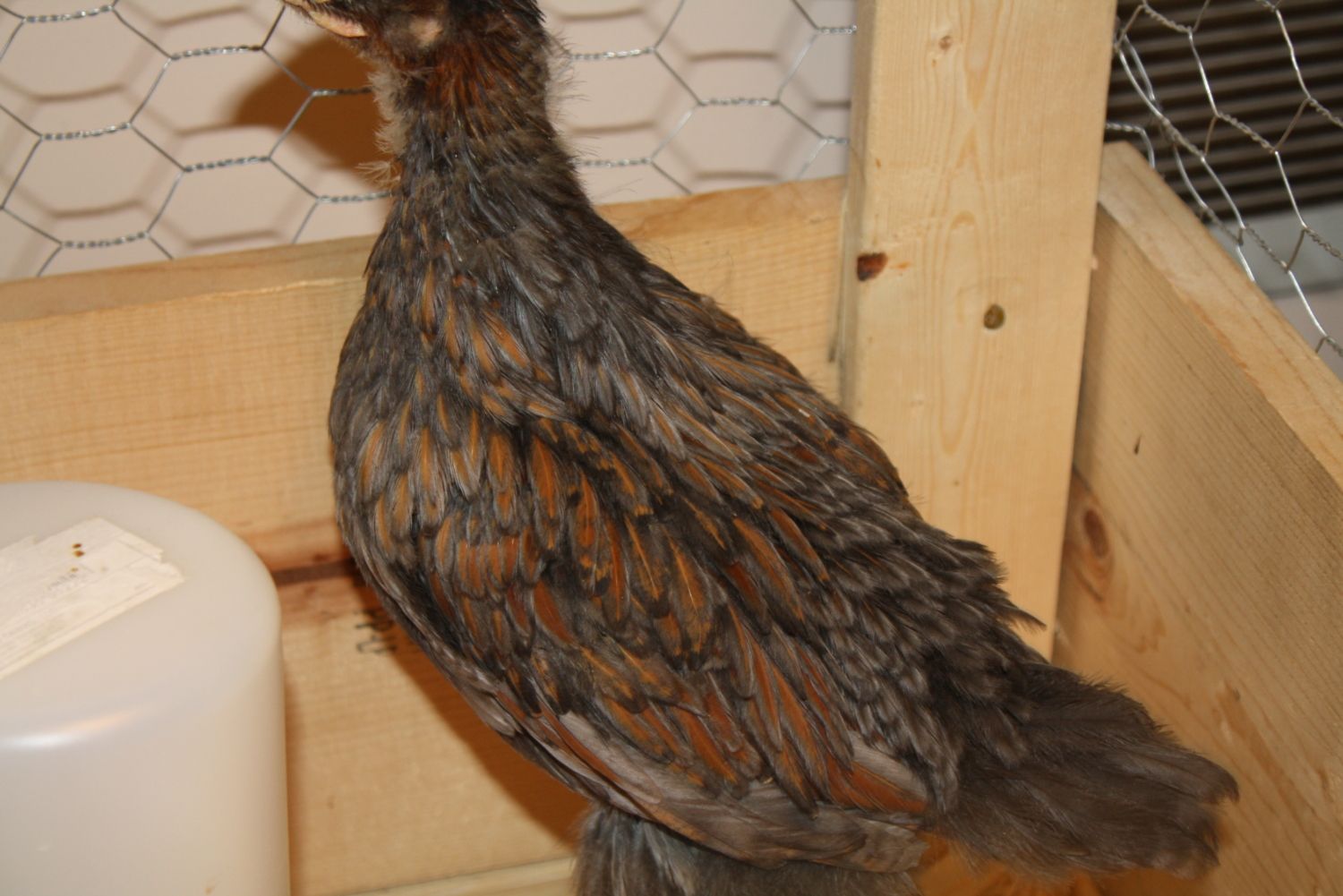 roo to the back, pullet in front of him.