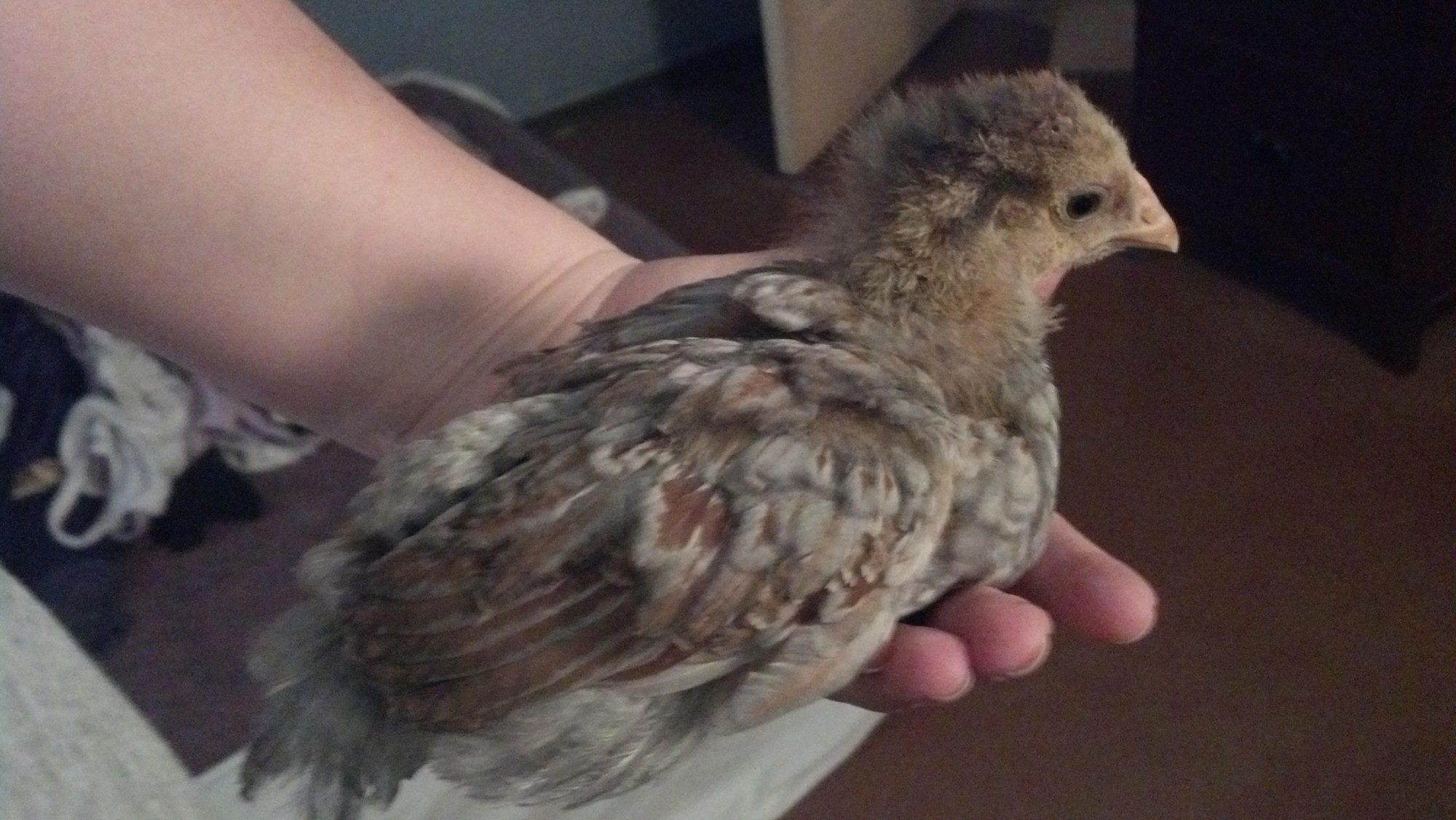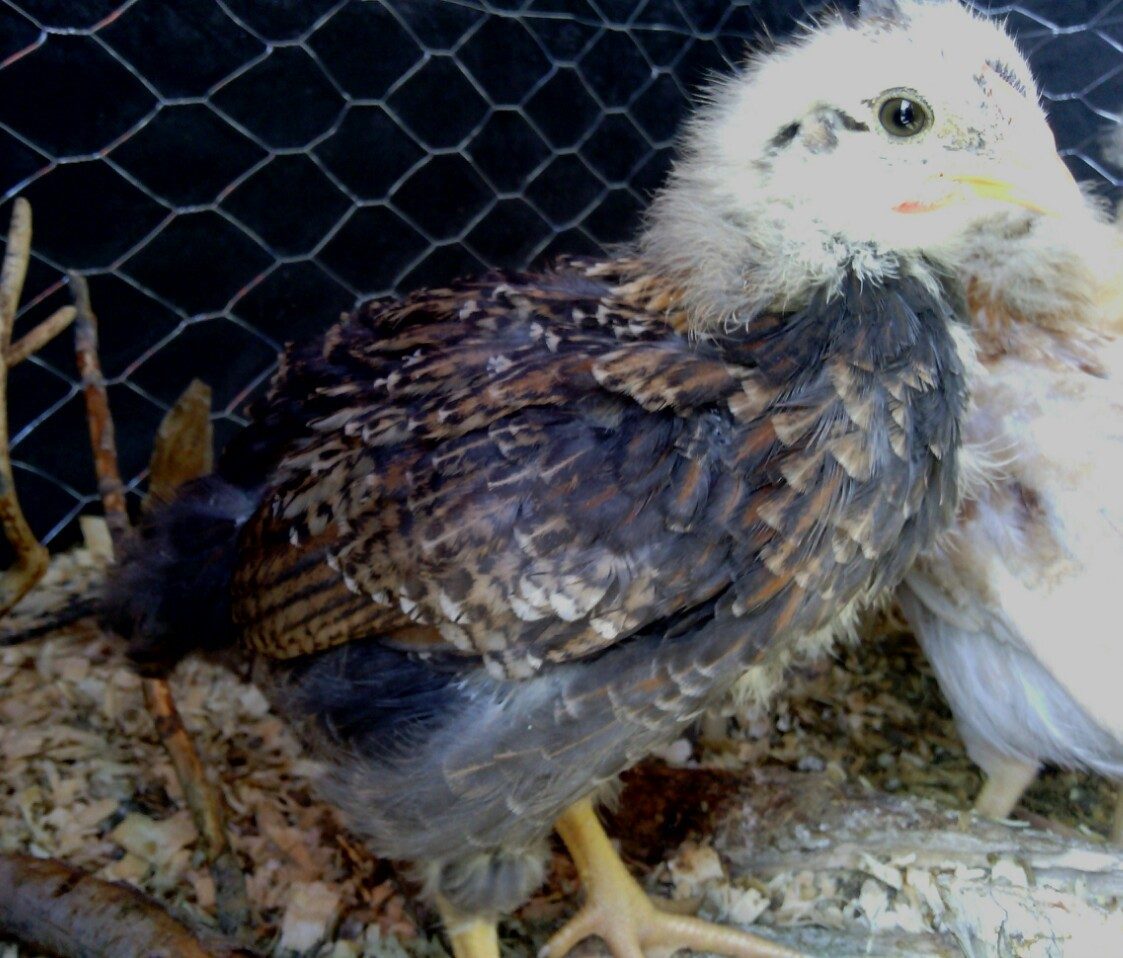 Five week update pics as requested, and please take a gender guess!!! I have another broody and am trying to decide if I want to track down some BLRW eggs for her. I really want a blue hen and if this is a roo (the other is a black) then I'm going shopping!