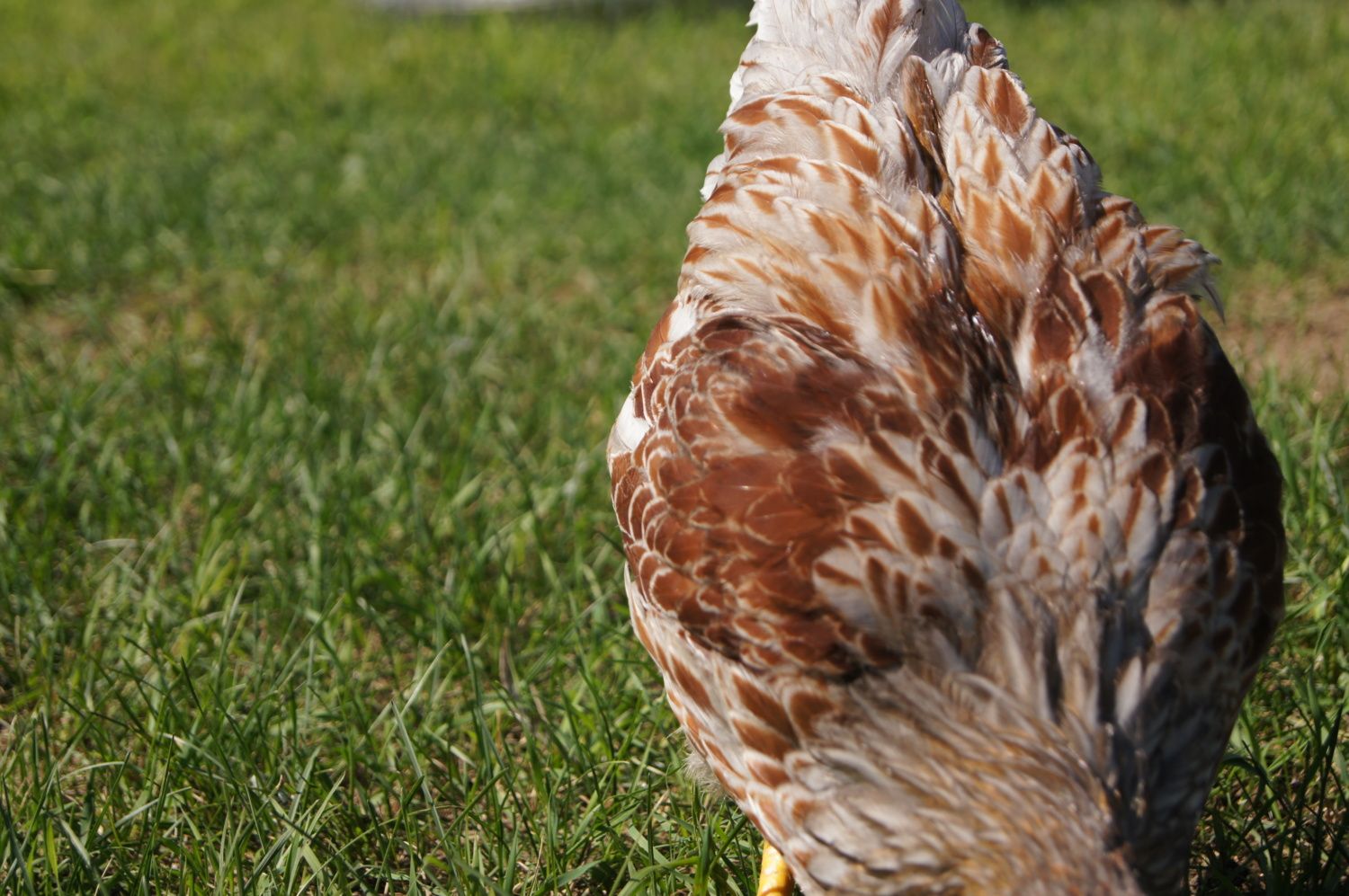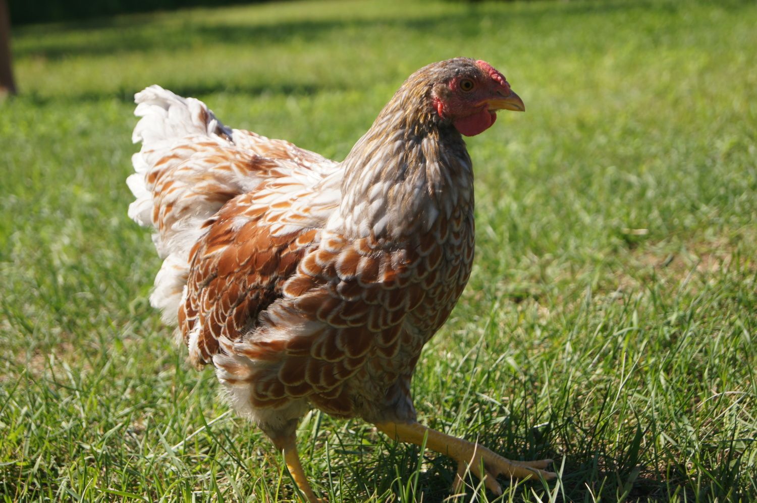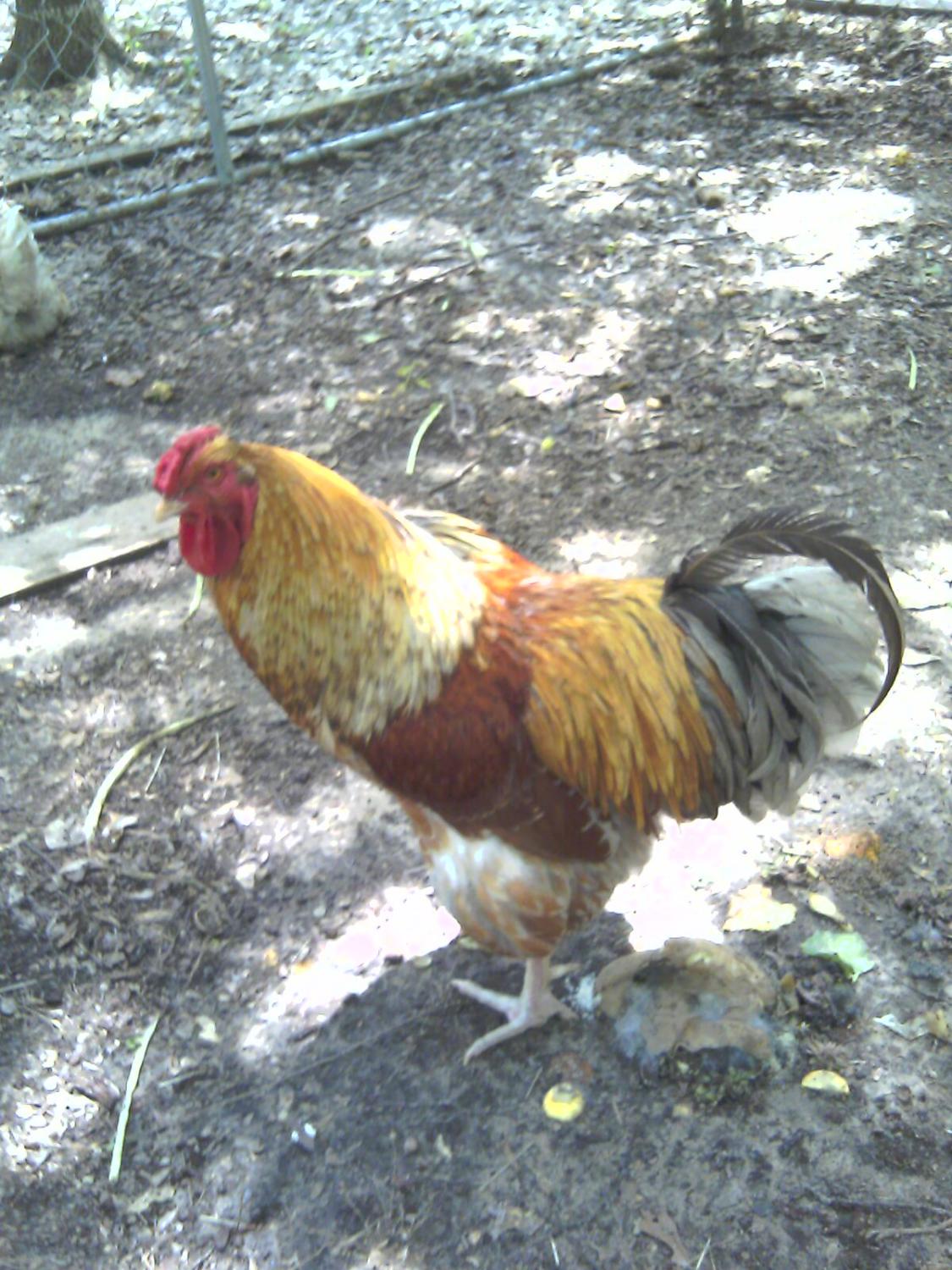 This bird is a pet quality bird. It is gold and should be a mahogany red. It is narrow and no chest. The body style reminds me of a hatchery EE. The wing placement is too low. When you think of the body structure of a BLRW think of a round circle.