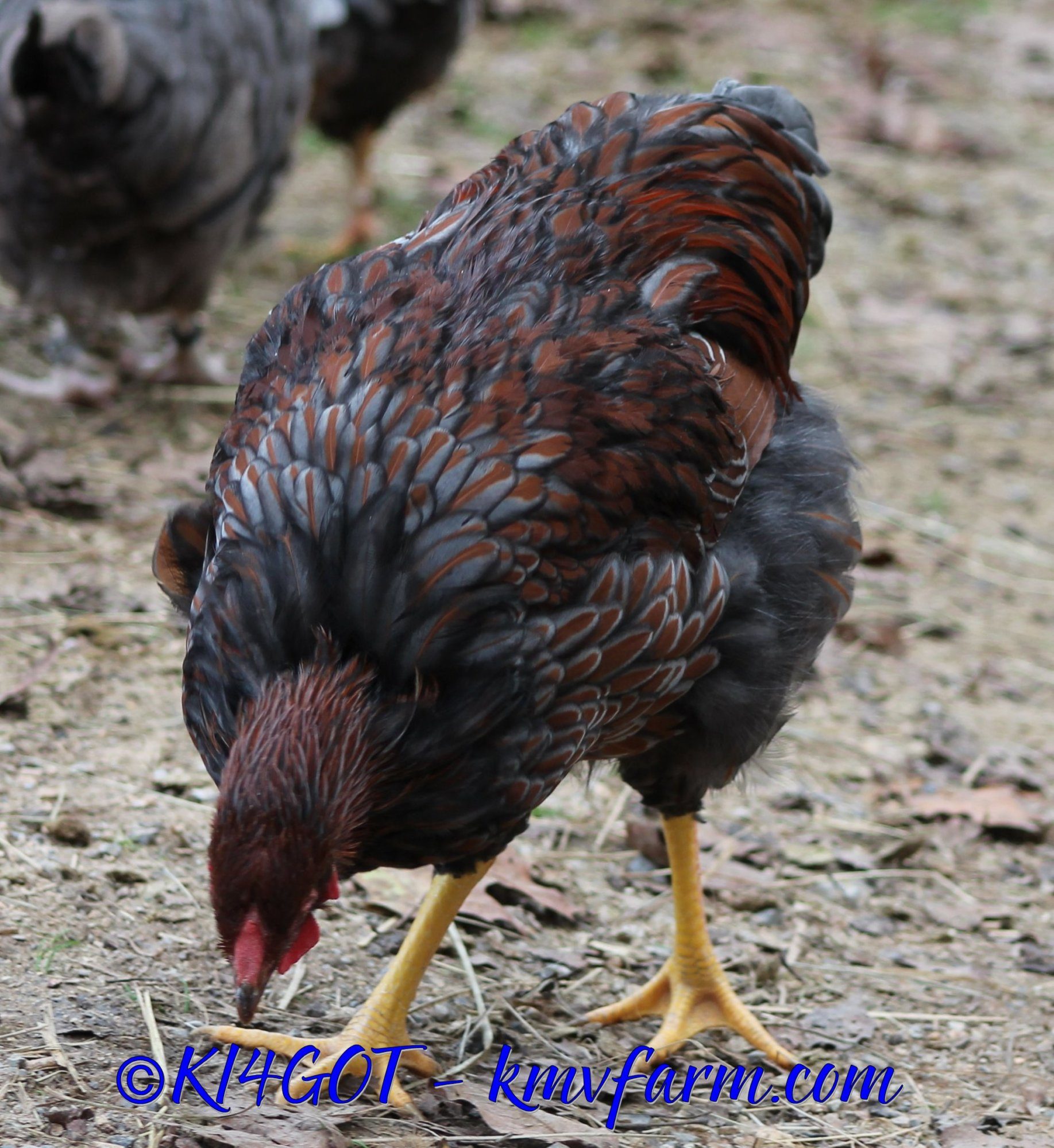 CD and Shim are both the same age/hatch, both were sold as hatchlings and came back to me - CD because he was too nice as a chick to let her eat him! Shim because I lost my other hen and needed a spare.