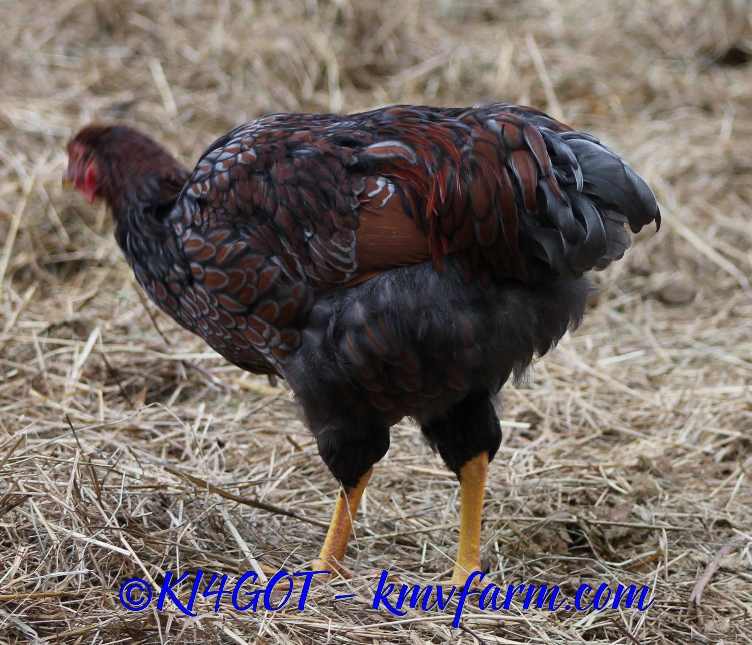 Her best buddy used to be a bantam Cochin who had a bad habit of pulling tail feathers. This girl is still growing hers back.