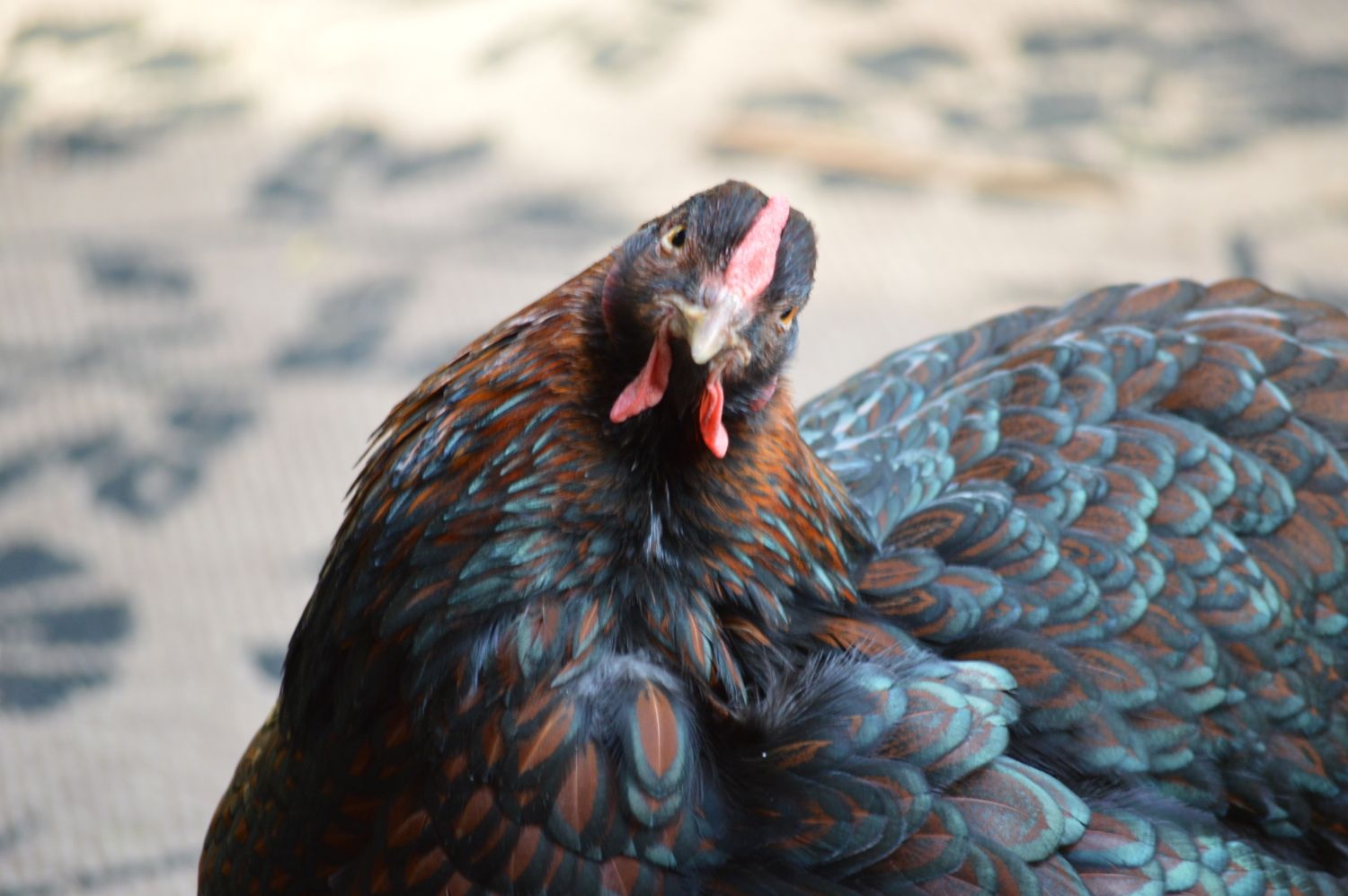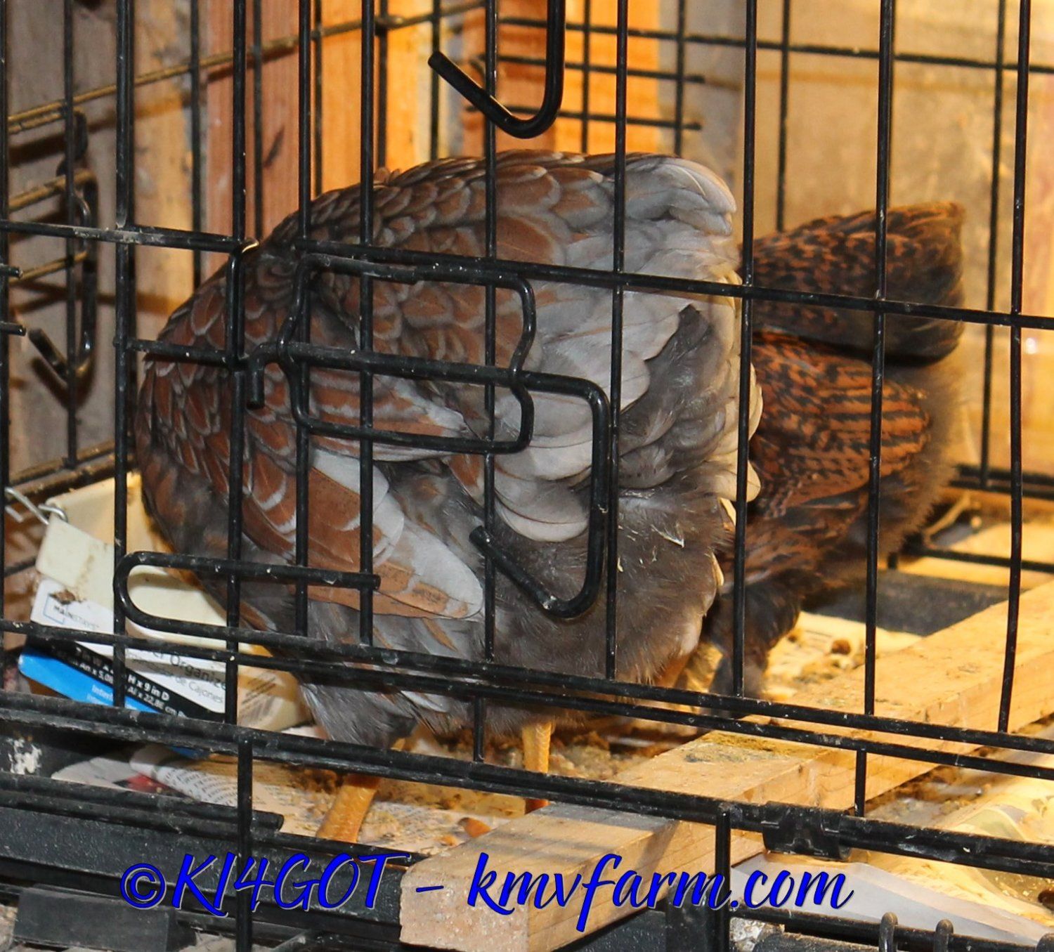 and i'd say the smee-chin (smee = my bantam blrw roo, momma's partridge bantam cochin) has definitely got the 'dotte tail going on. so I think I know which direction i'll be breeding her towards. if only to intensify the mahogany in the lines. she's got a good dose of that from her mother for sure. should get some good lacing bred back to smee also, since she's homozygous for pattern gene, heterozygous for the other 2...