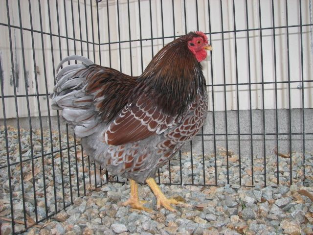 mhamilton, the girl you pictured looks to have a bit of a beard, more than I've ever noticed on any 'dottes... don't see any ear muffs but if she's mixed you may not. also looks more like a cushion comb than a pea or rose comb, but I've got one ee girl that has cushion also, who lays wonderful blue-green eggs...