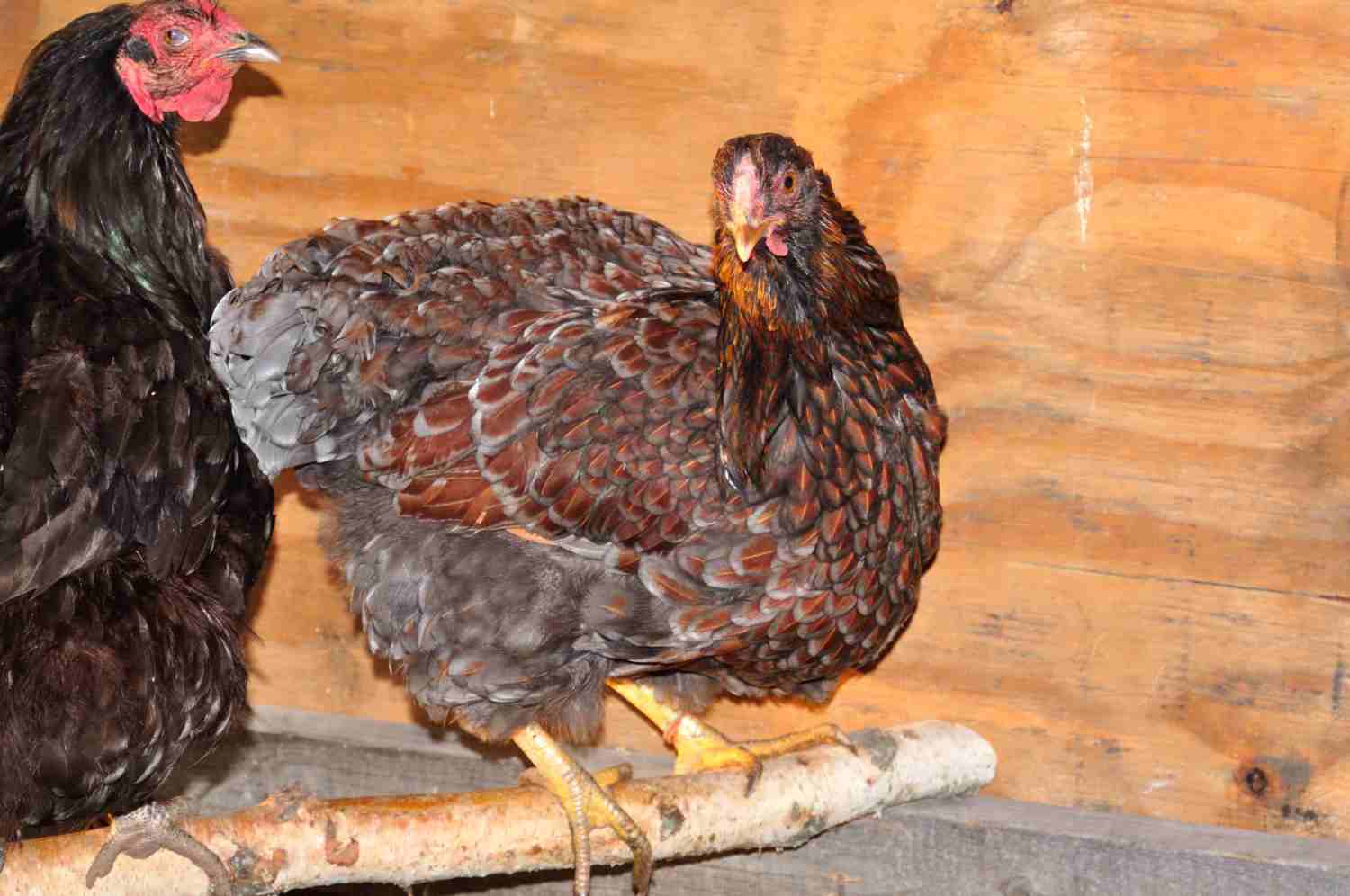 nice dark color on her..that blue male that was left for you at TO's is a Foley breeding. He is pretty young and developing nicely. He should loose that brassiness in his hack and saddle feathers on his first moult.