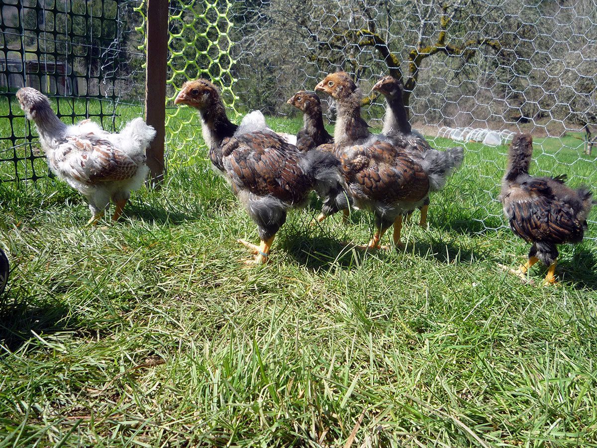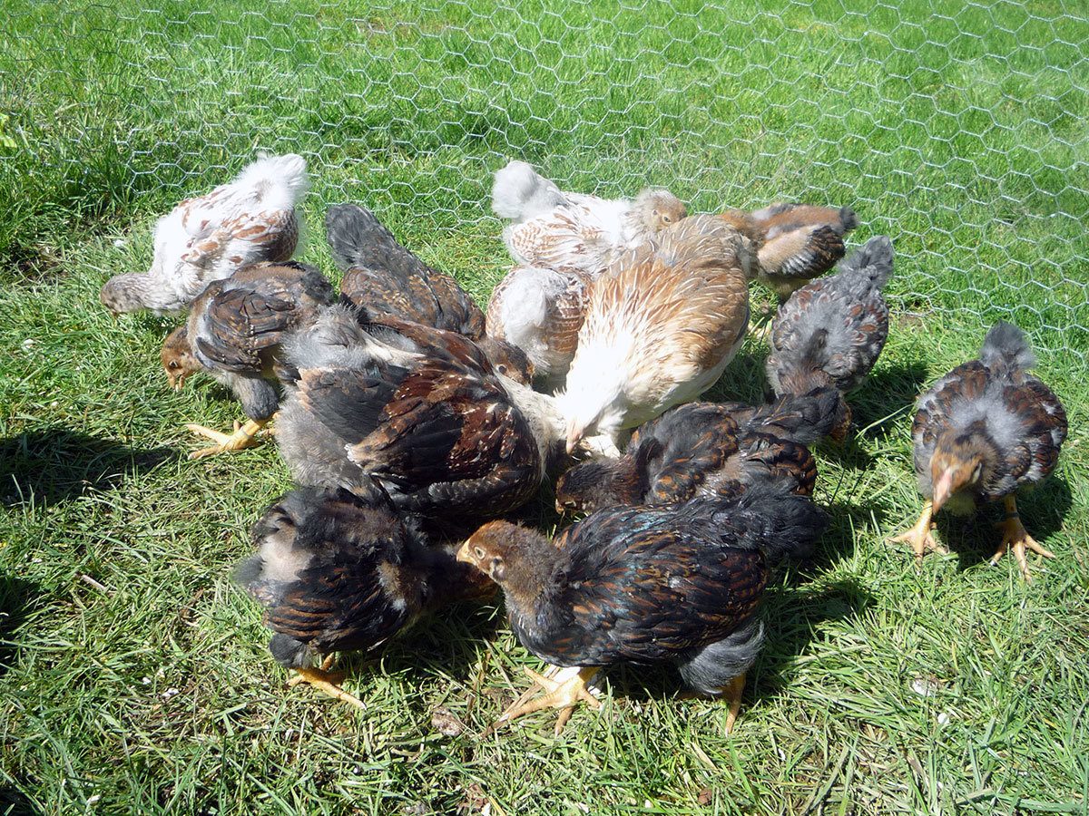 here's my 5 week olds today in the sun, with their 8 week old Faverolles "parents"